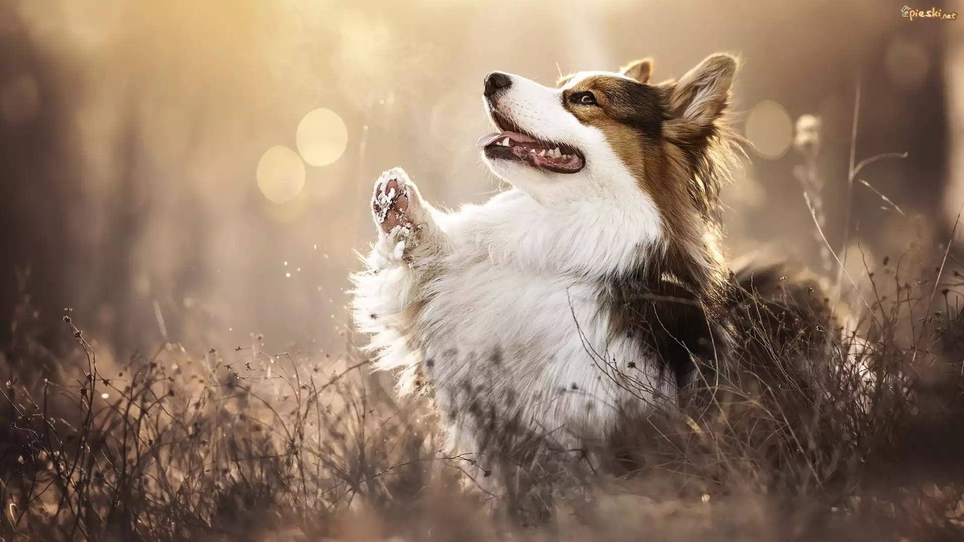 Pies Pies, Welsh corgi pembroke, Trawa, Rozmycie