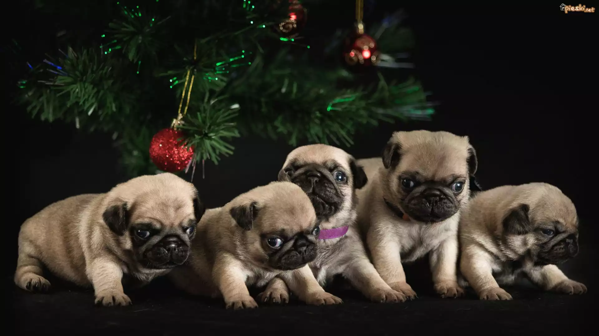 Pięć, Szczeniaków, Szczeniaki, Mopsy, Choinka
