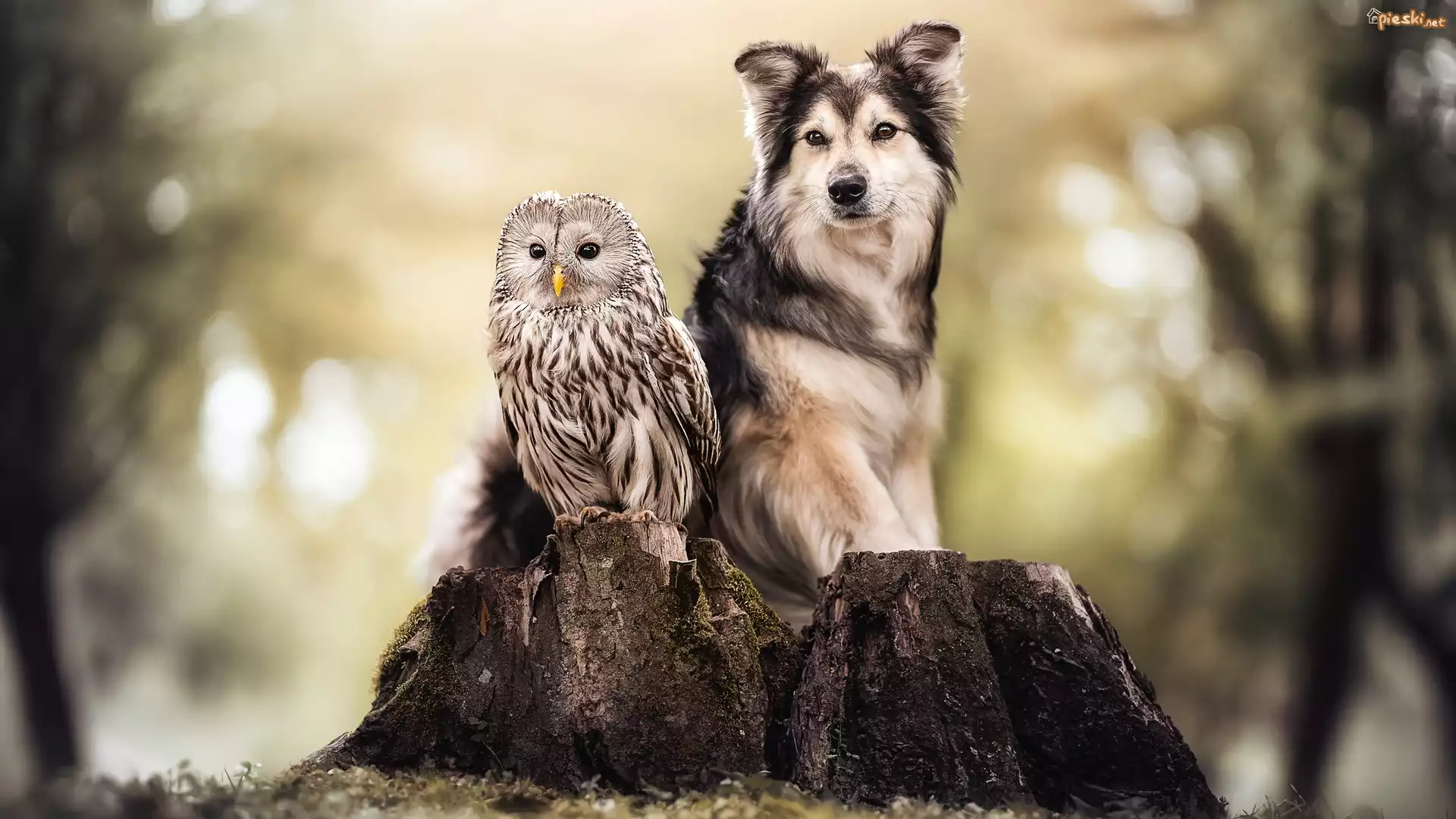 Sowa, Puszczyk, Pies, Pień