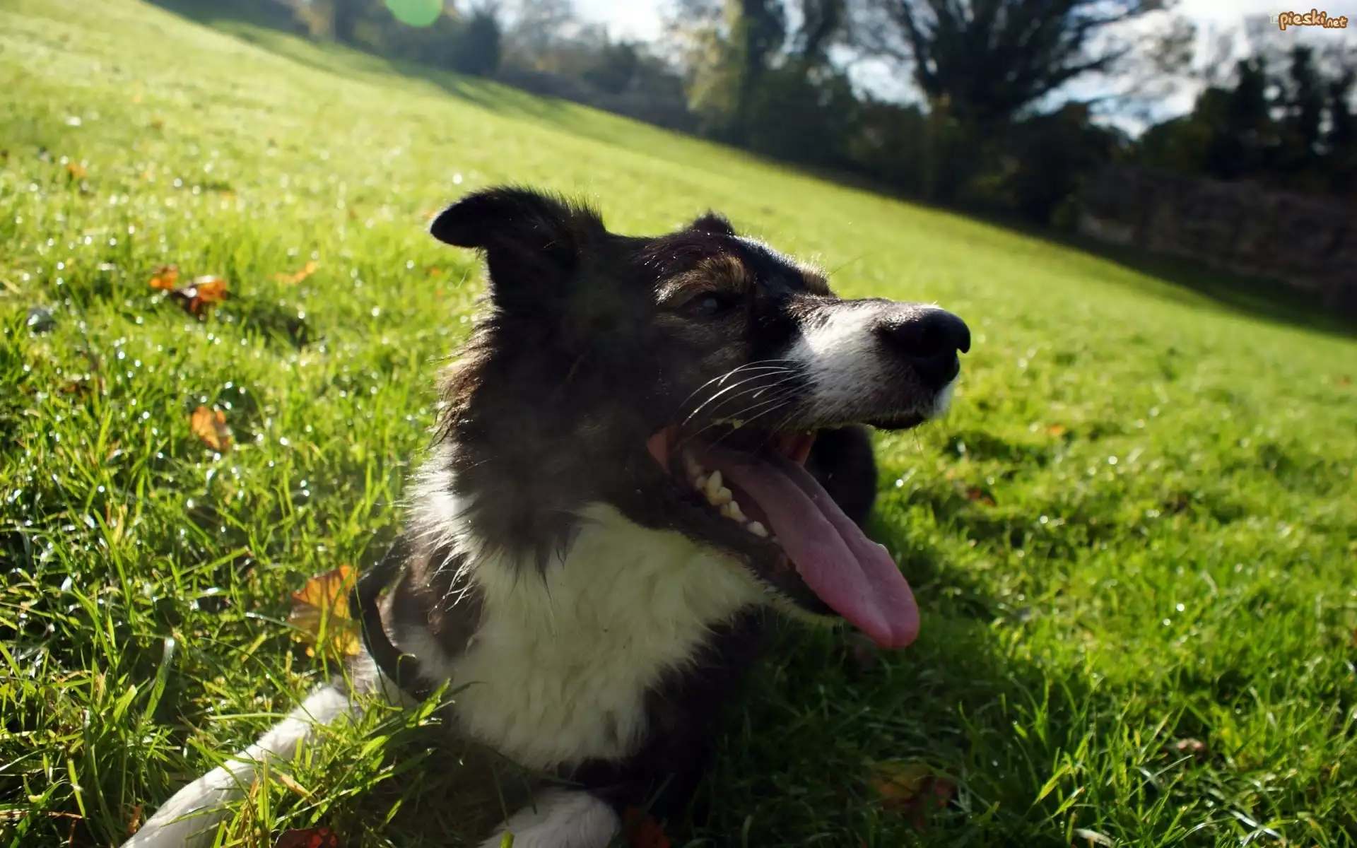 Pies Pies, Wystający, Język, Łąka, Drzewa