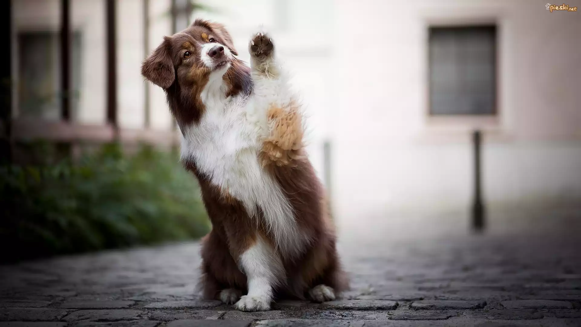 Pies, Brązowo-biały, Owczarek australijski, Chodnik
