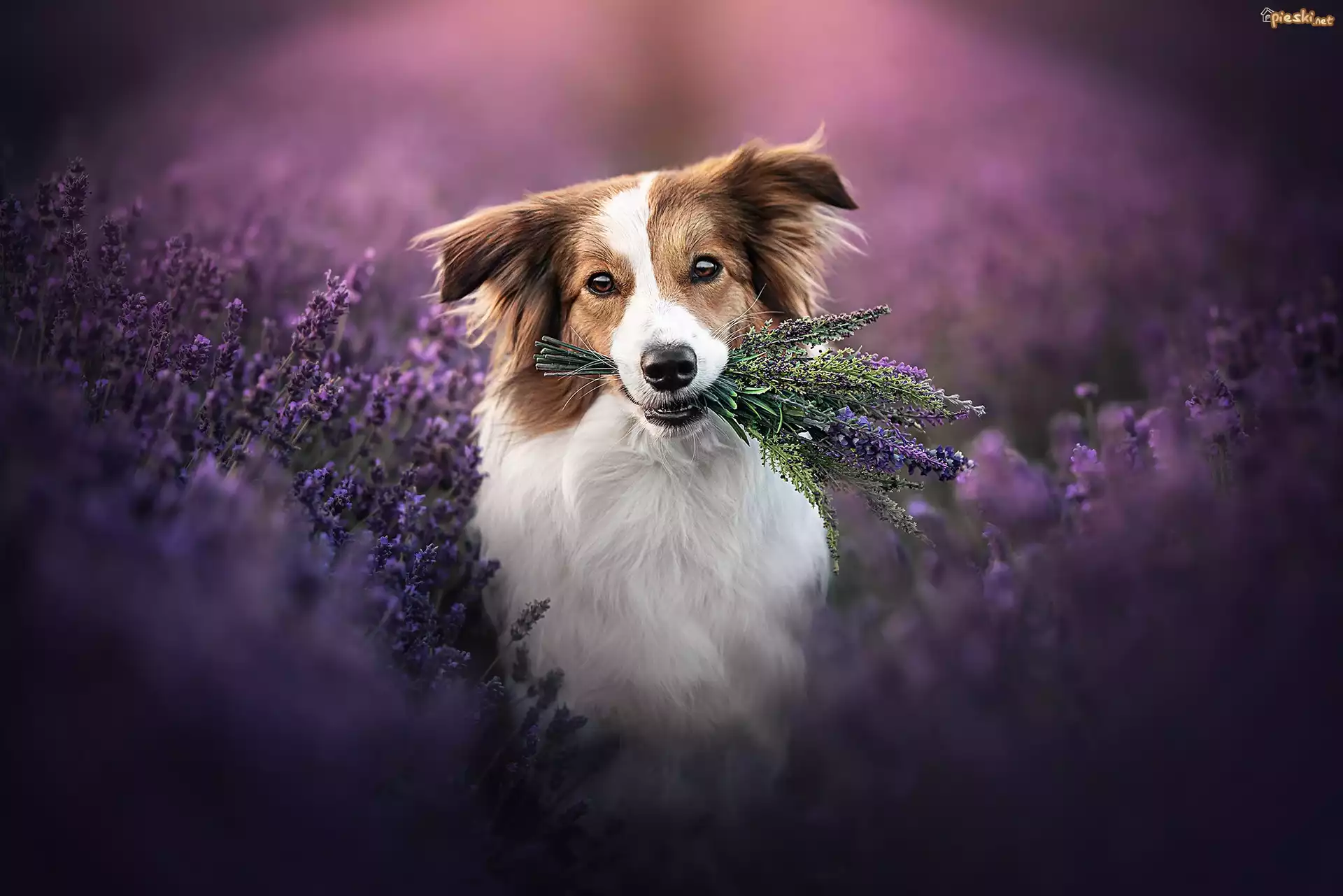 Pies Kwiaty, Pies, Border collie, Lawenda