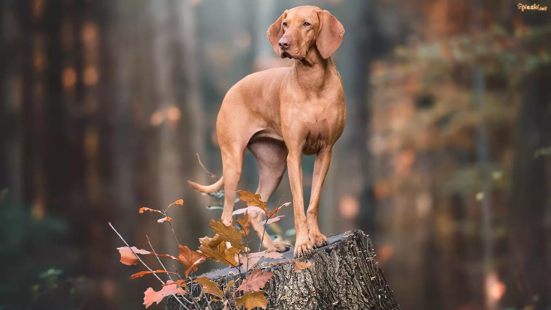Pies Brązowy, Pies, Wyżeł węgierski krótkowłosy, Pieniek, Liście