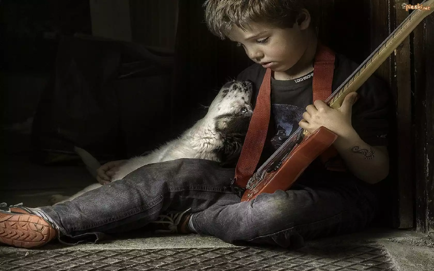 Chłopiec, Pies, Gitara