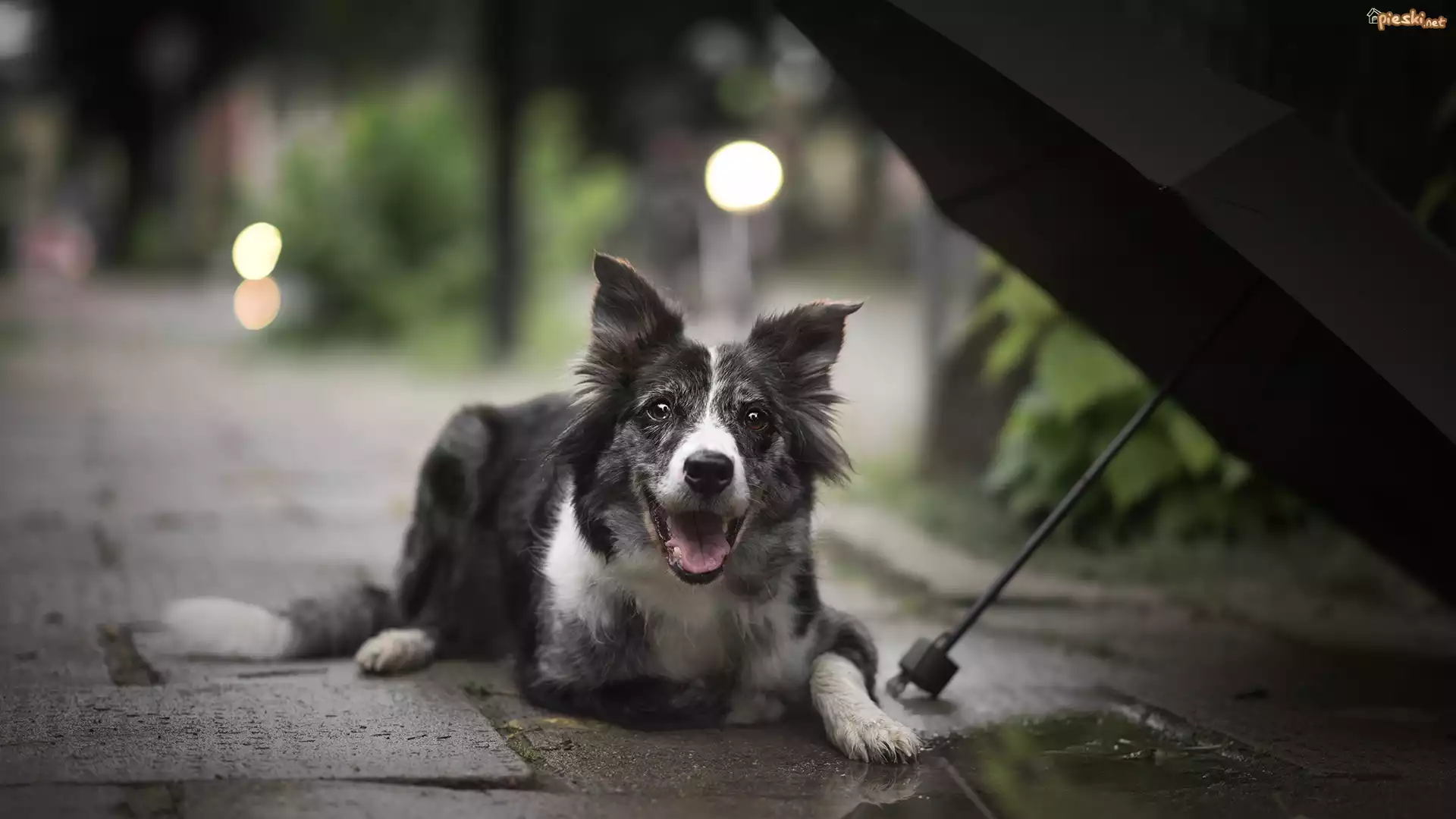 Pies Pies, Border collie, Chodnik, Parasol