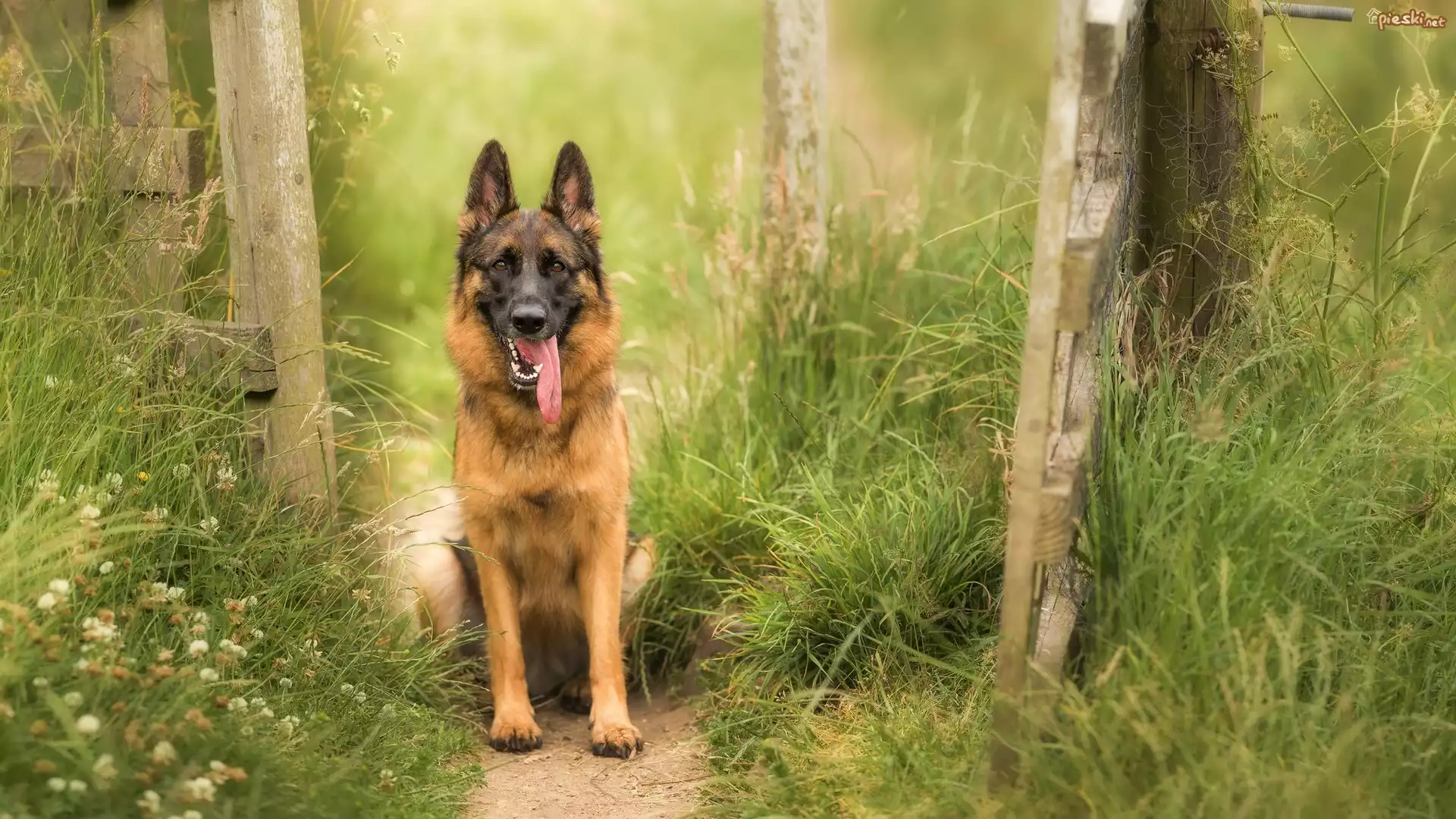 Pies Pies, Owczarek niemiecki, Ścieżka, Trawa