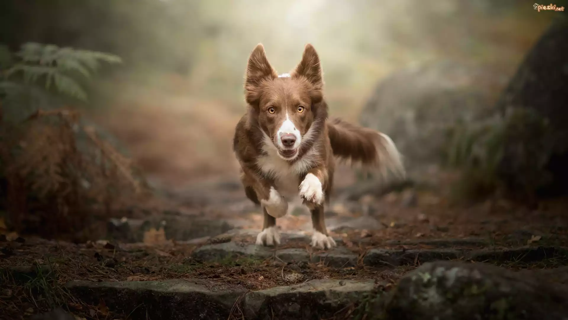 Pies Pies, Czekoladowo-biały, Border collie, Bieg