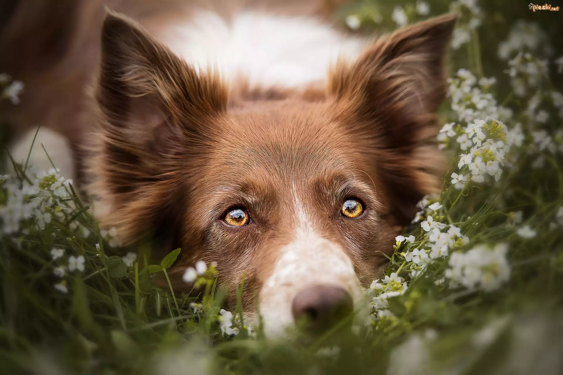 Szczeniak, Hutawka, Akita Pies, Labrador Pies, Biay, Szczeniak, Golden retriever, Trawa ajka zachodniosyberyjska Pies, Golden, Retriever, Kwiatki Pies, Mordka, Brzowy, Doberman, Wrzosy Pies, Szczeniak, Czarno-biay, Border collie, Zima Springer spaniel walijski, wysoka, trawa Biay Owczarek Szwajcarski, Las, Zima