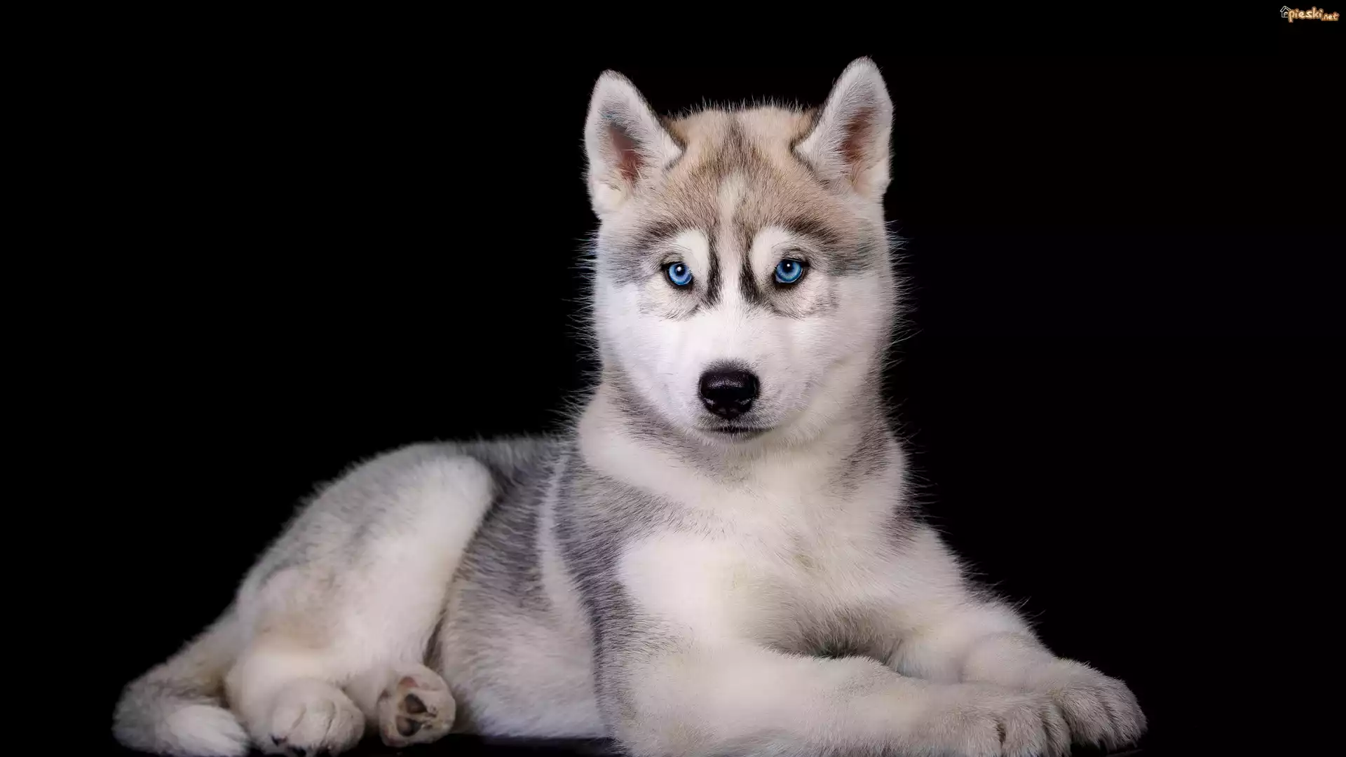 Pies Pies, Szczeniak, Siberian husky, Czarne, Tło