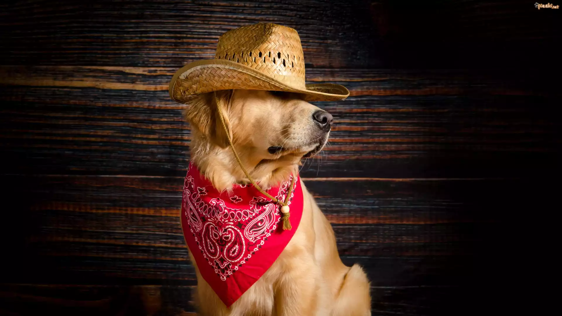 Pies Pies, Golden retriver, Kapelusz, Czerwona, Apaszka