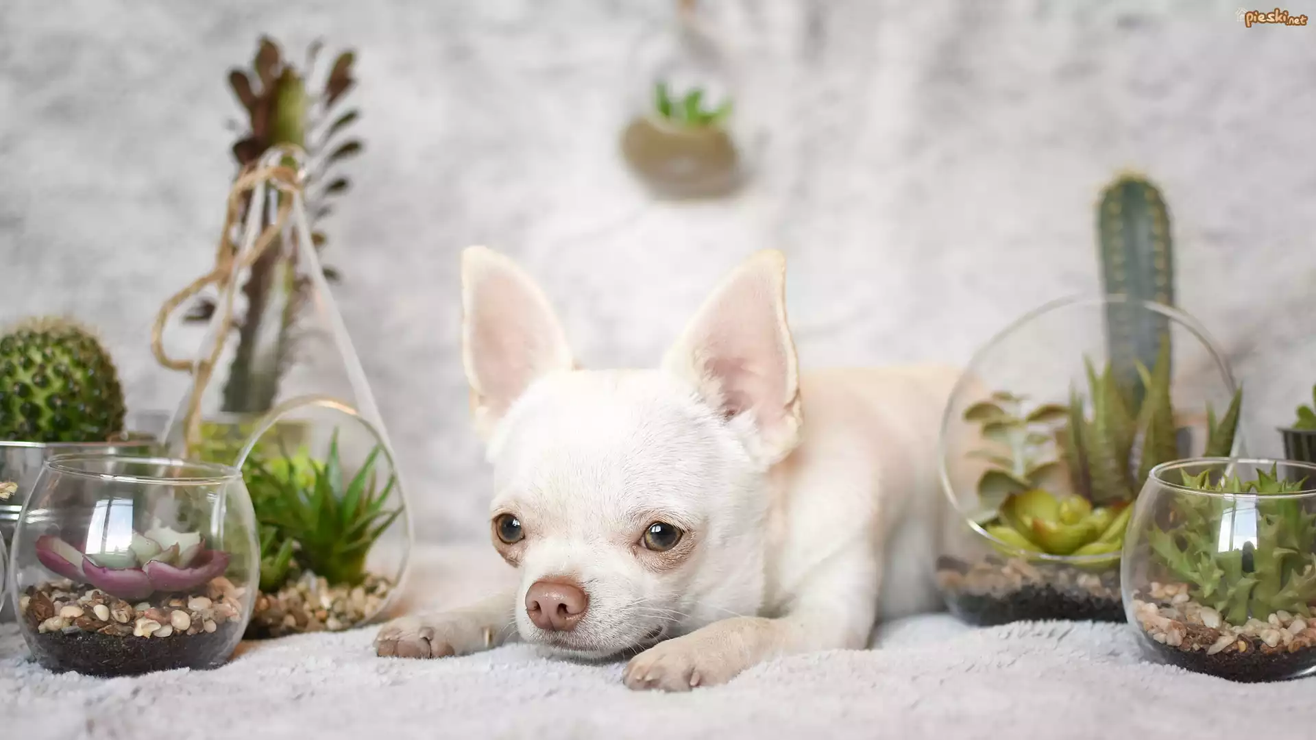 Pies Pies, Chihuahua krótkowłosa, Dekoracje, Rośliny