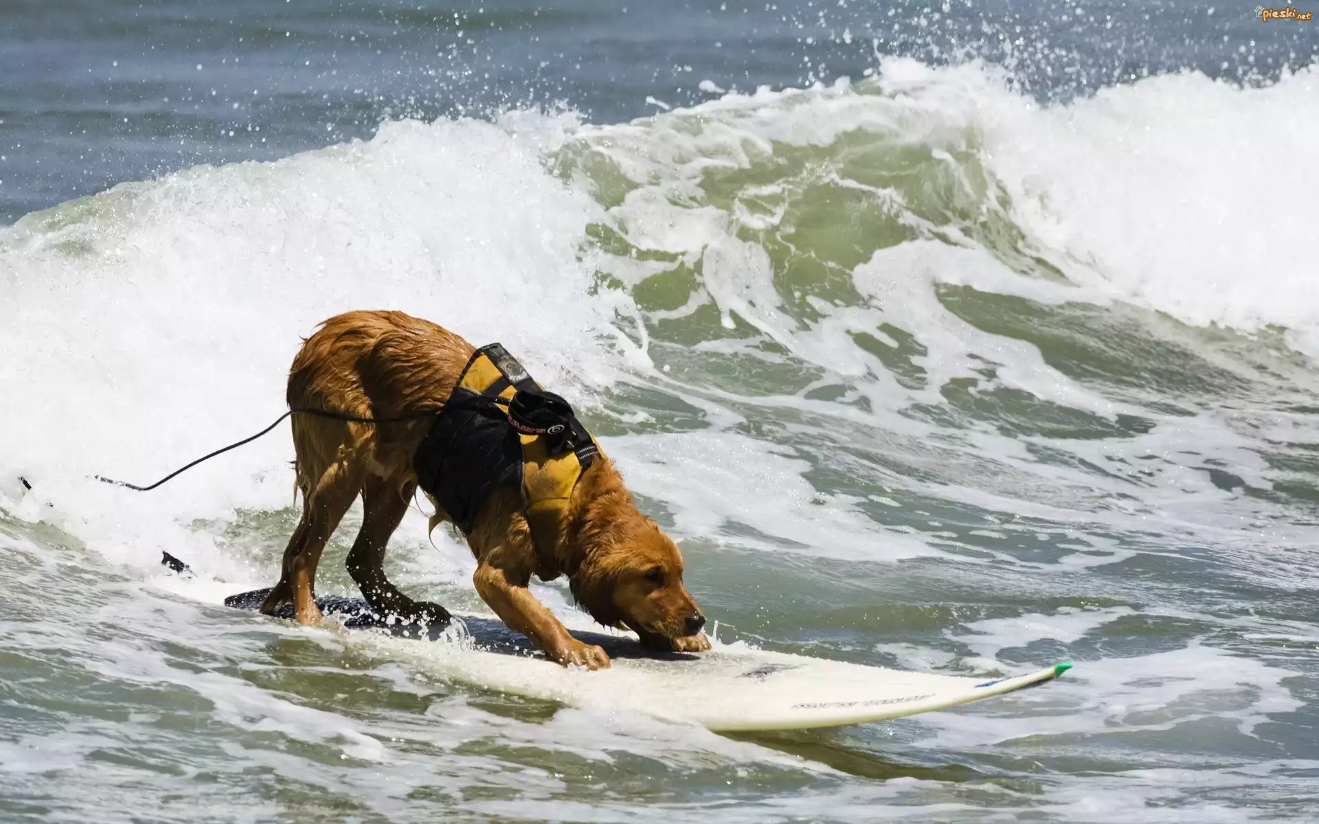 Pies, Ratownik, Fale, Deska, Surfingowa
