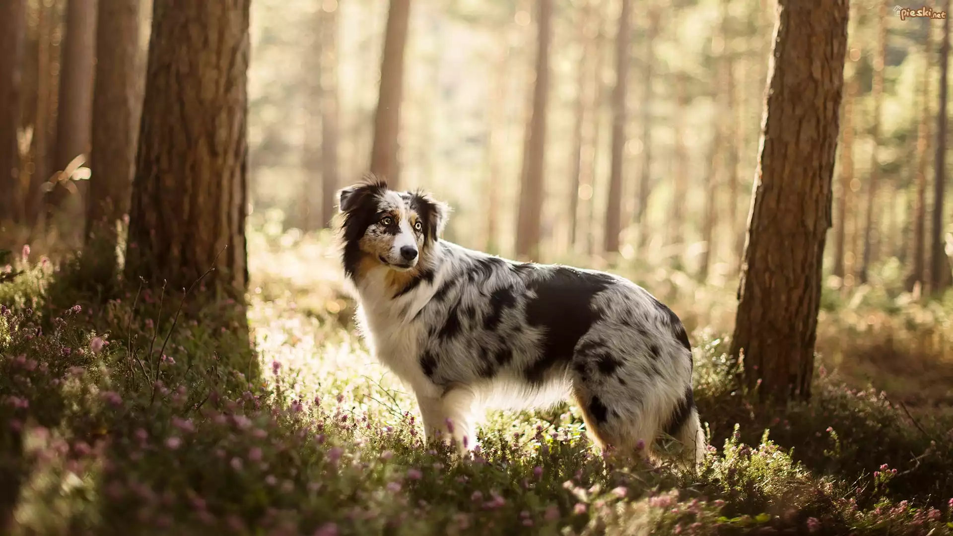 Pies Pies, Owczarek australijski, Las, Drzewa, Rośliny