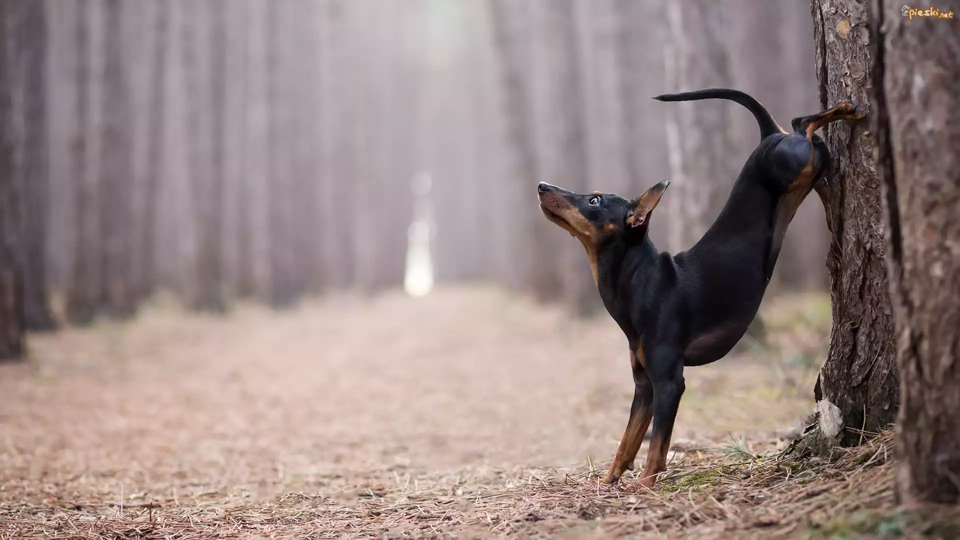 Pies Pies, Pinczer, Drzewo, Las