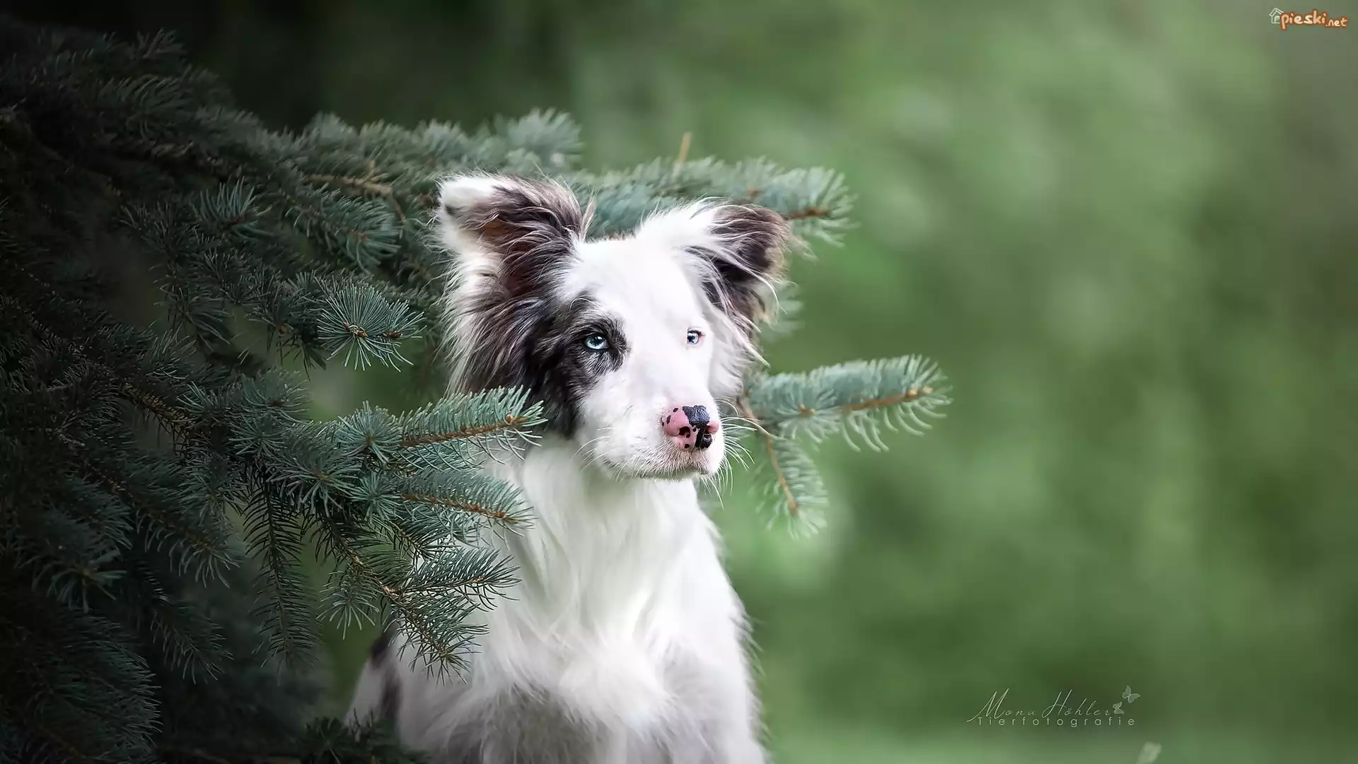 Pies Pies, Border collie, Mordka, Gałązki, Świerkowe