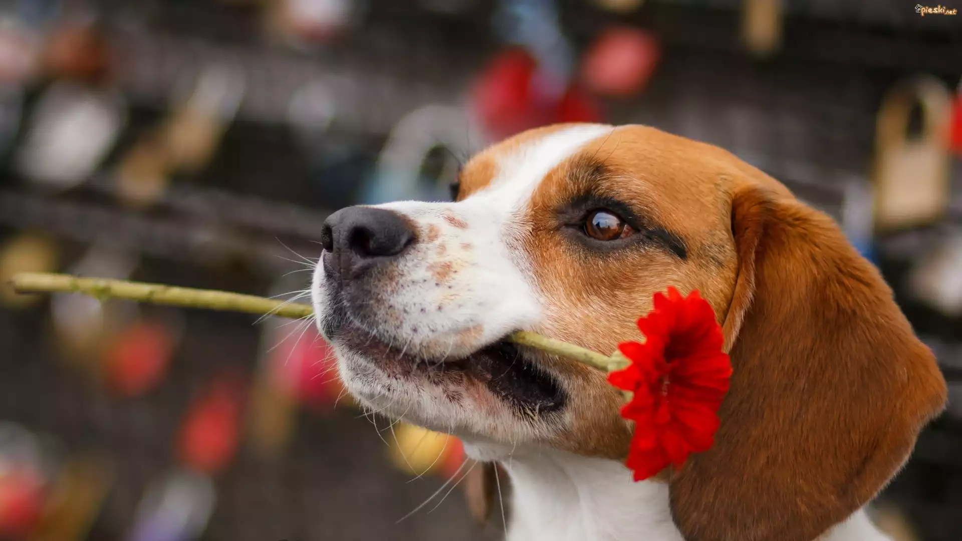 Pies Pies, Z, Gerberą, Portret