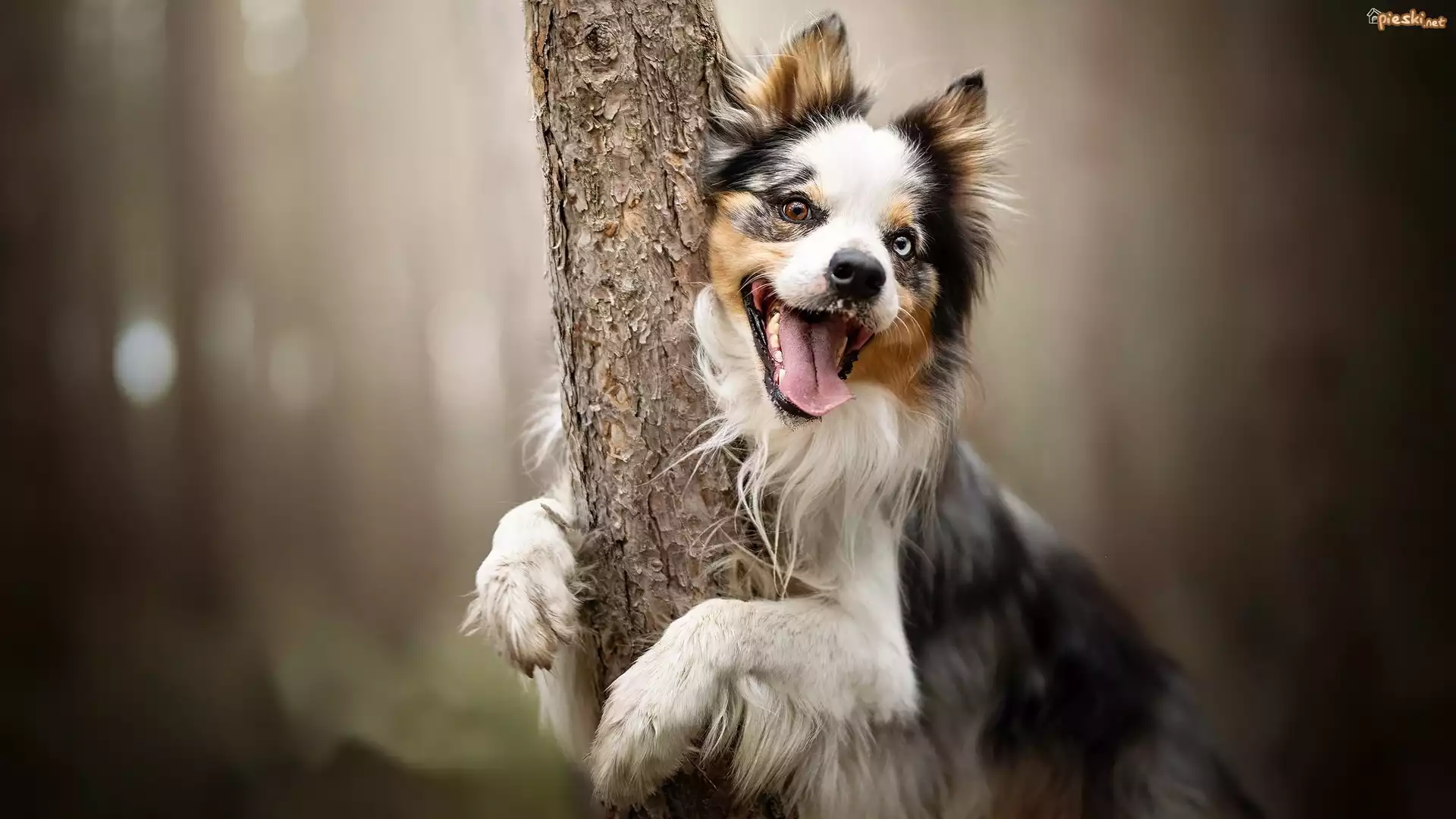 Pies Pies, Border collie, Mordka, Jęzor, Drzewo