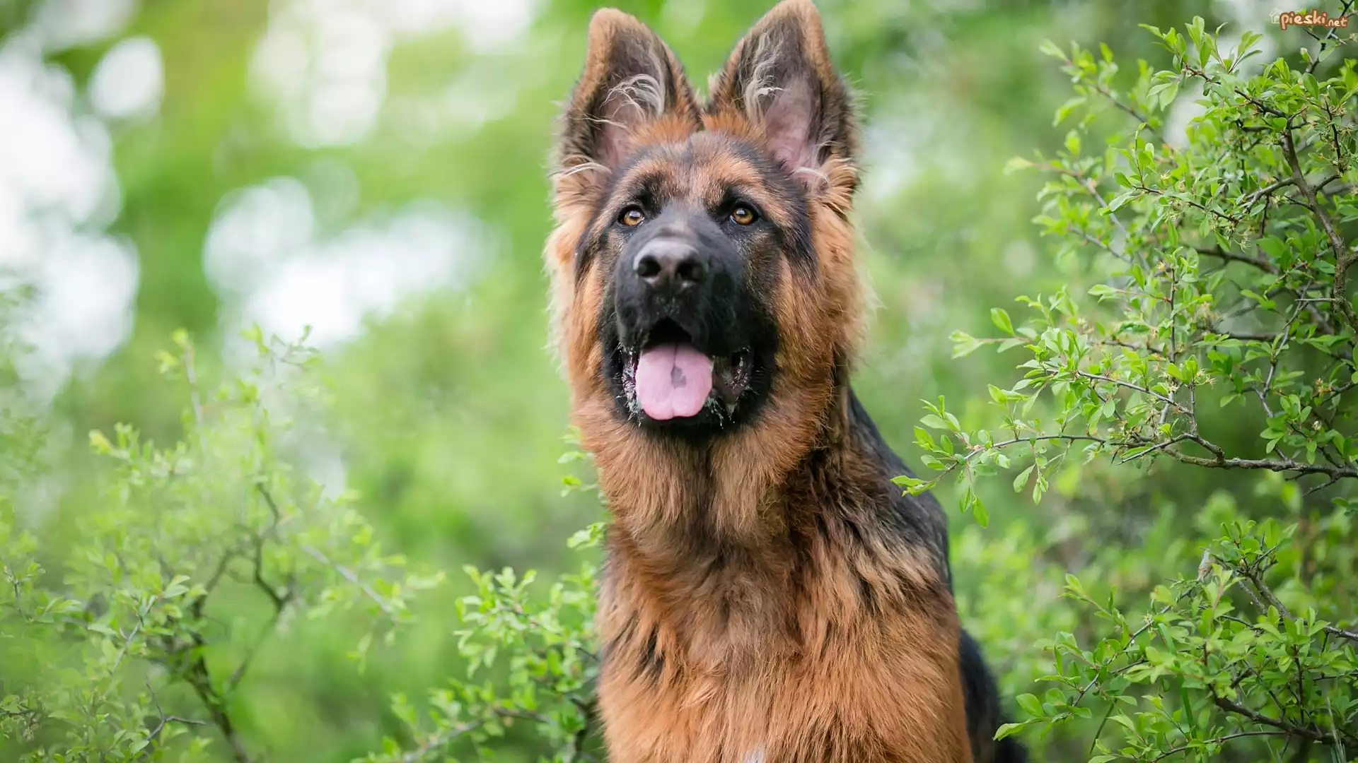 Pies Pies, Owczarek niemiecki, Mordka, Jęzor, Krzewy