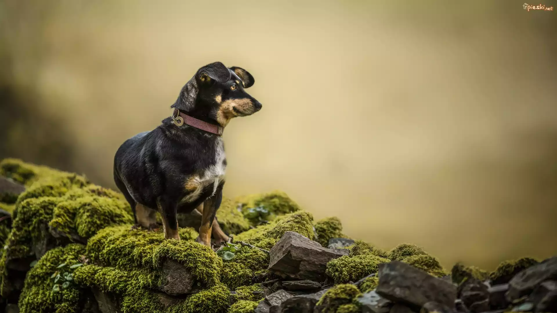Pies, Kundelek, Omszałe, Kamienie, Mech
