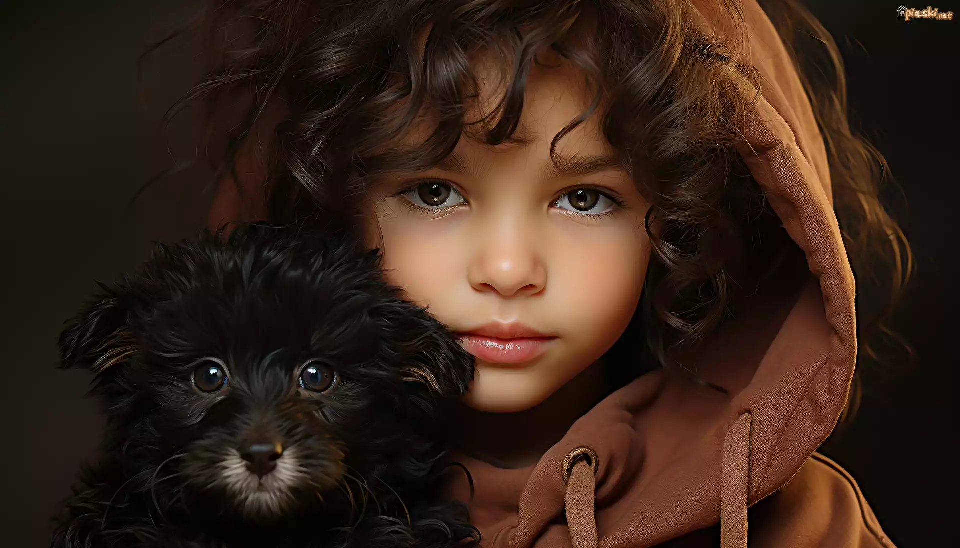 Dziecko, Bluza, Kaptur, Pies, Szczeniak, Spojrzenie, Grafika