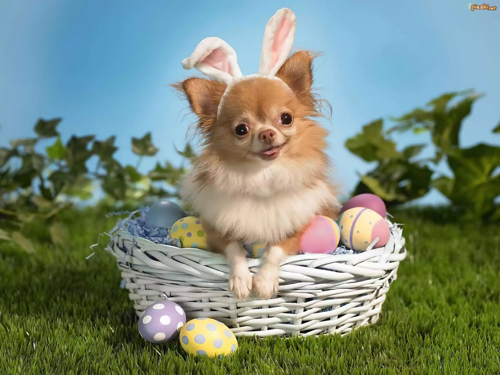 Pies Pies, Chihuahua, Królicze, Uszy, Koszyk, Pisanki