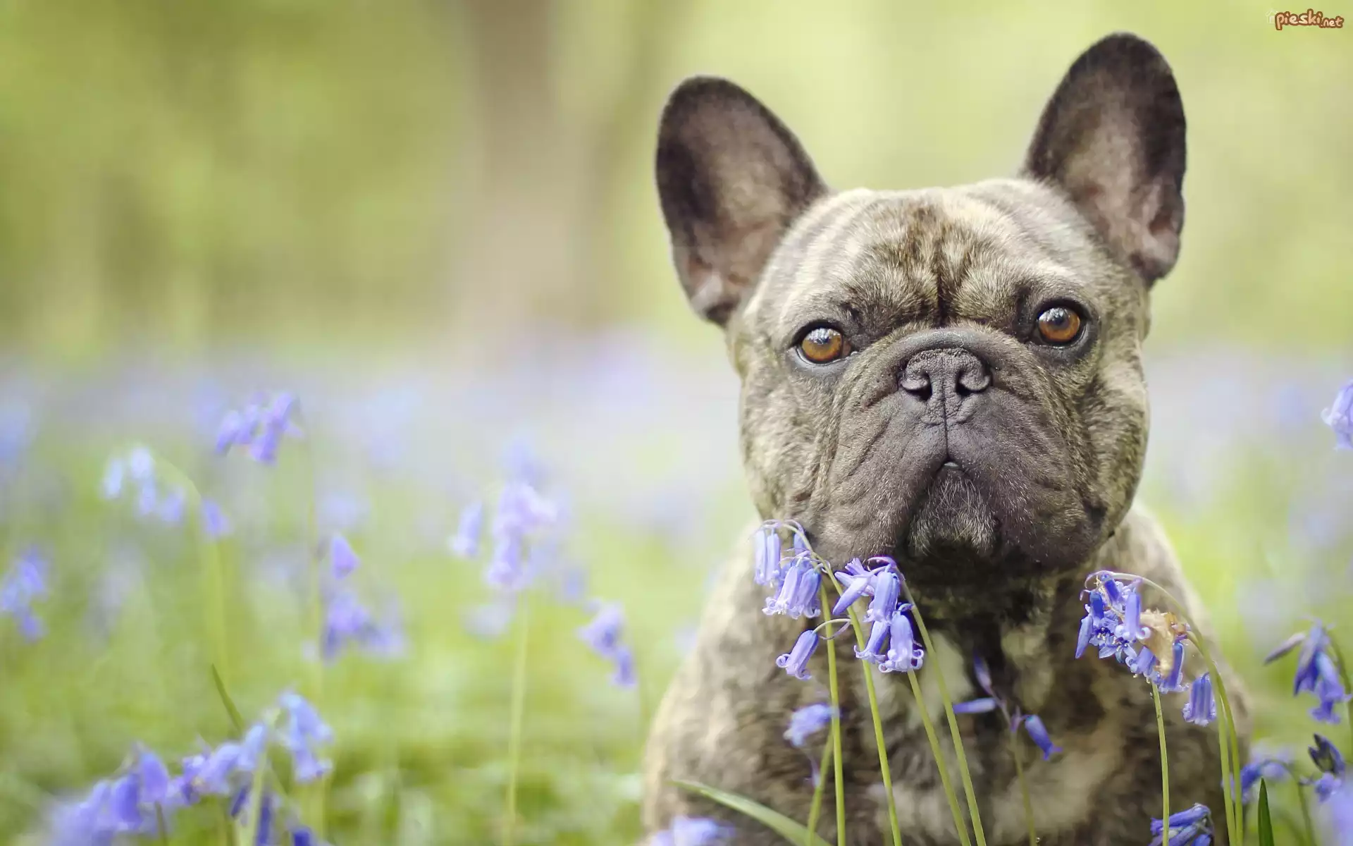 Pies Pies, Buldog francuski, Kwiaty, Cebulica