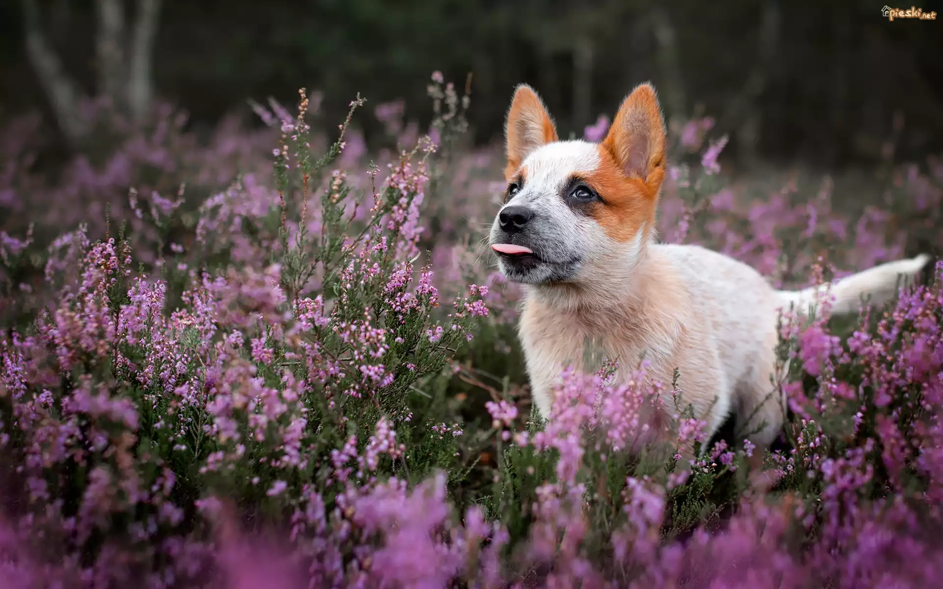 Pies Pies, Szczeniak, Jęzor, Kwiaty, Wrzos