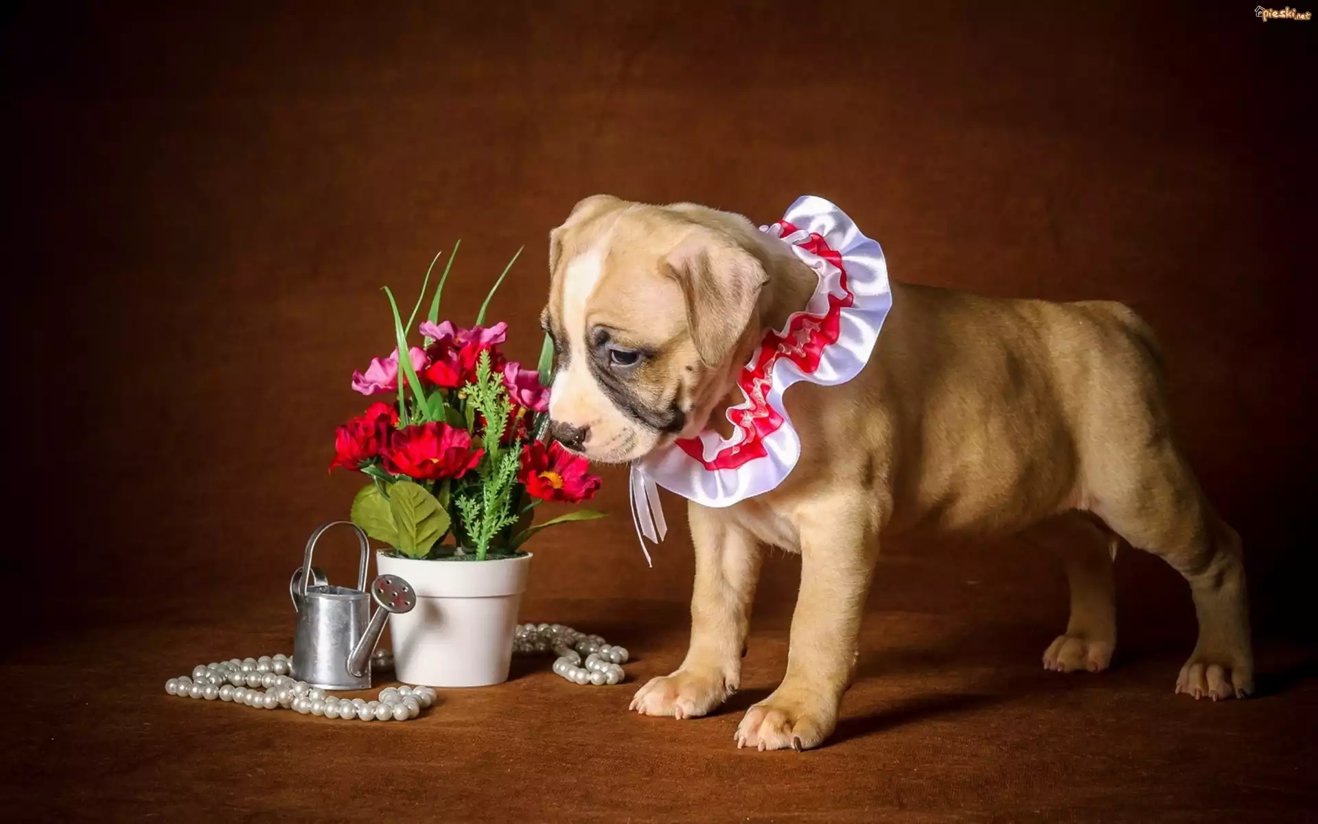 Pies Pies, Szczeniak, Kwiaty, Podlewaczka