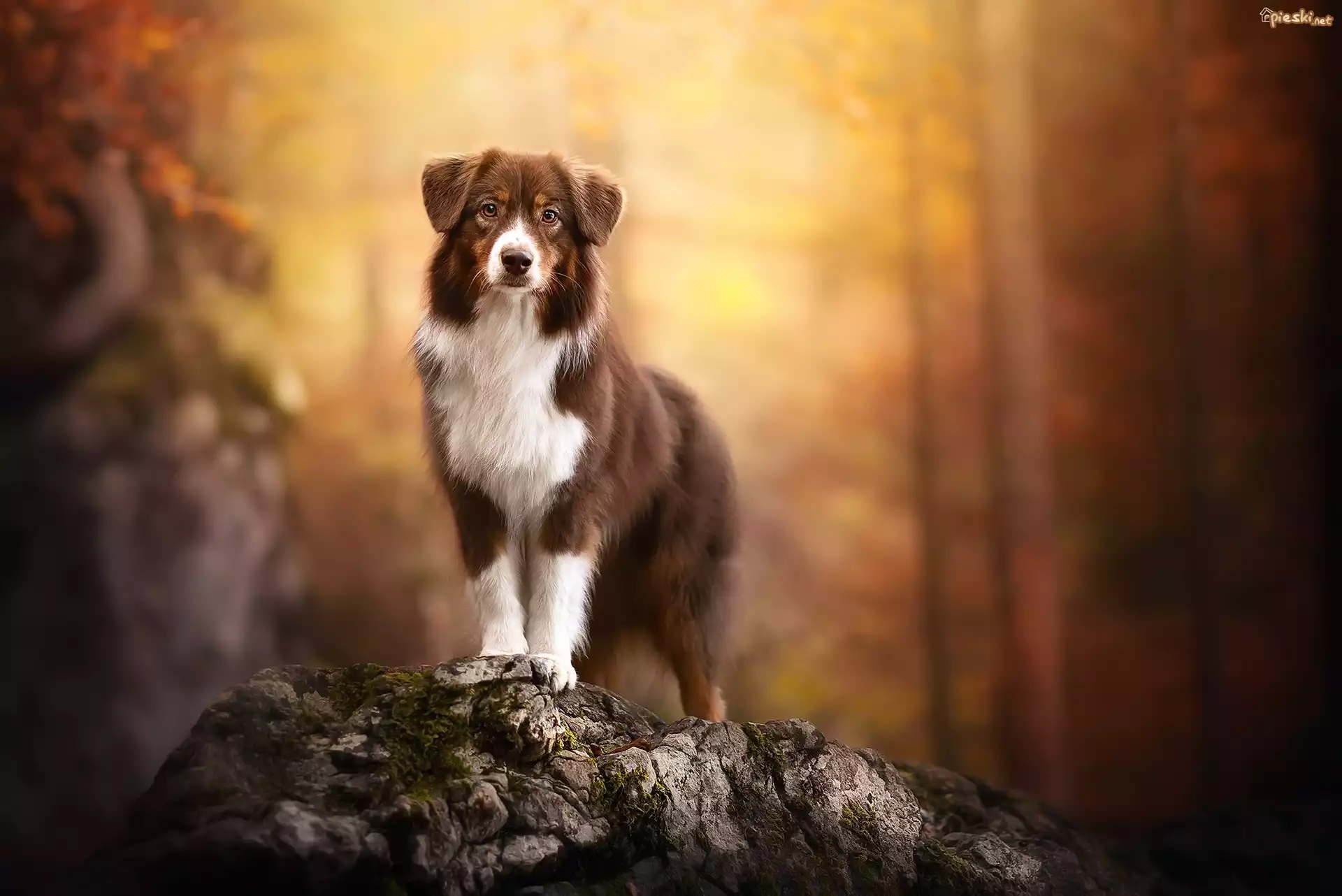 Pies, Owczarek australijski, Las, Kamień