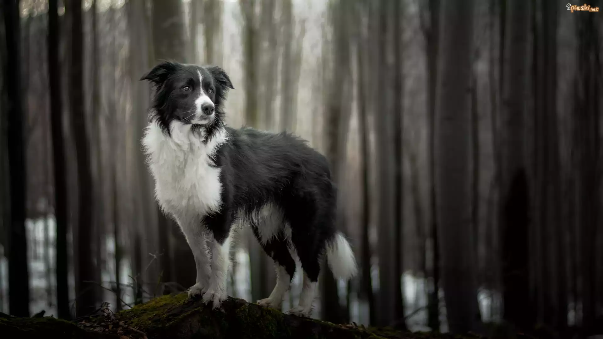 Pies Pies, Border collie, Las, Drzewa