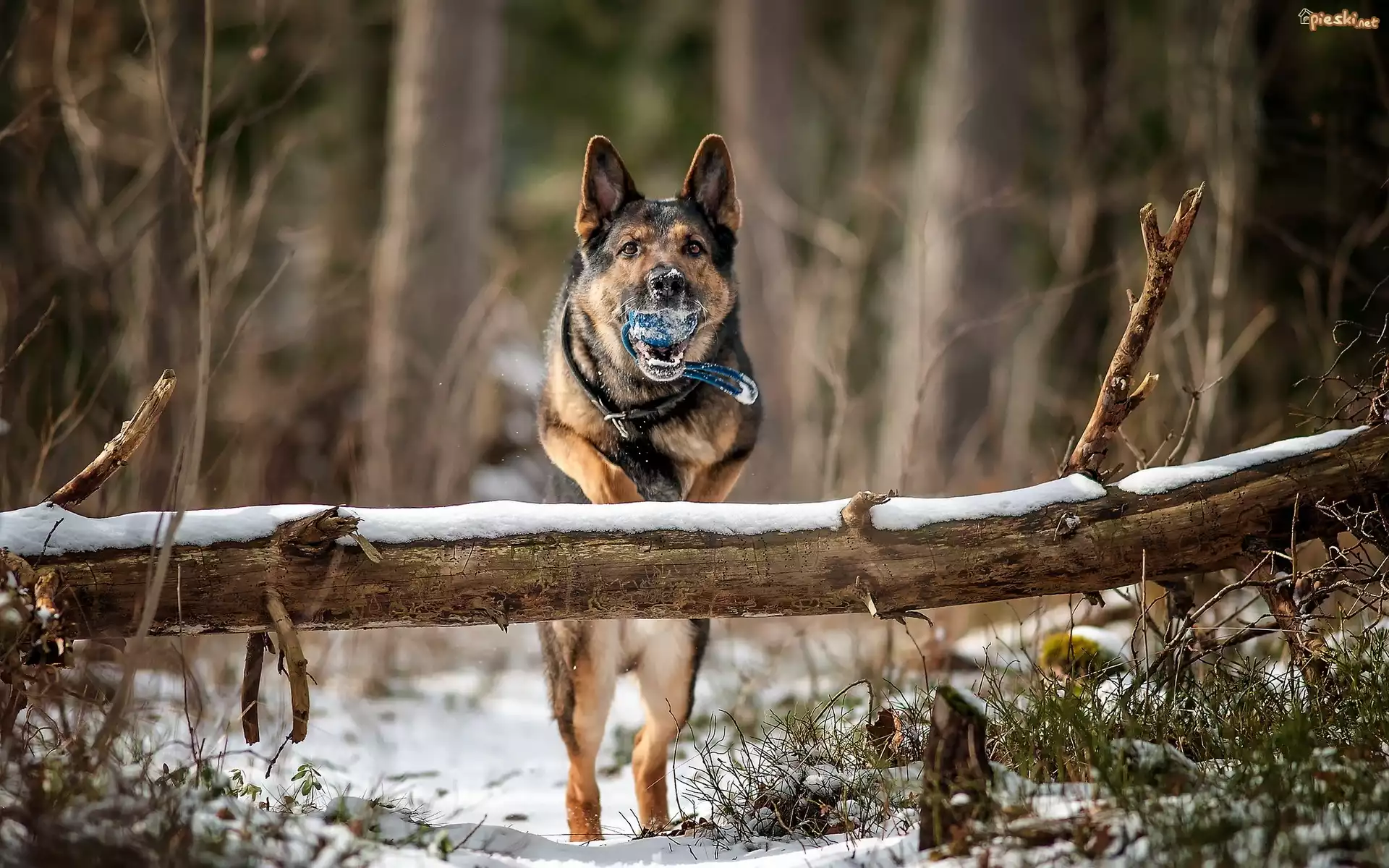 Pies Pies, Piłka, Zabawa, Las, Zima