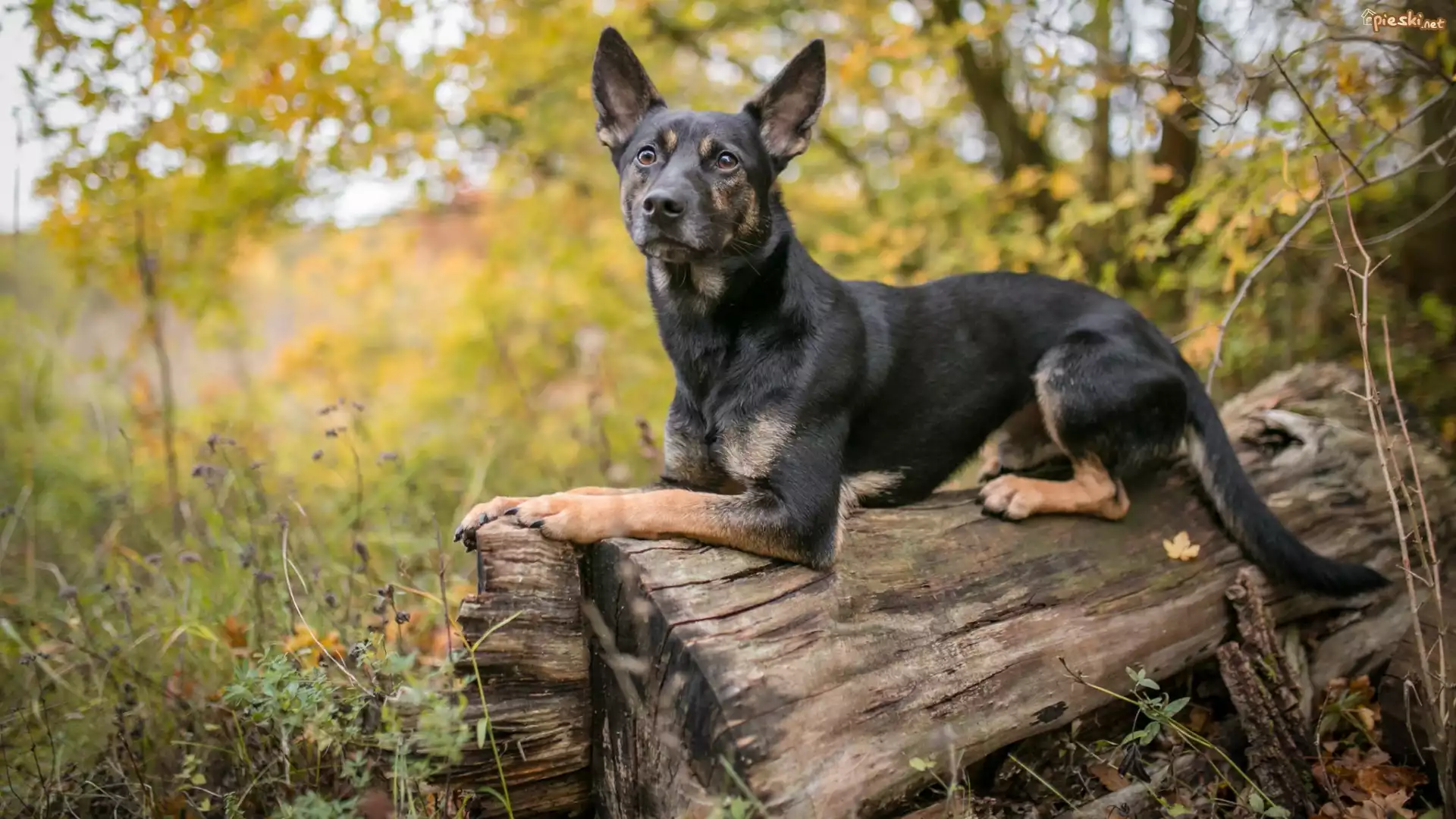 Pies Leżący, Pies, Kłoda