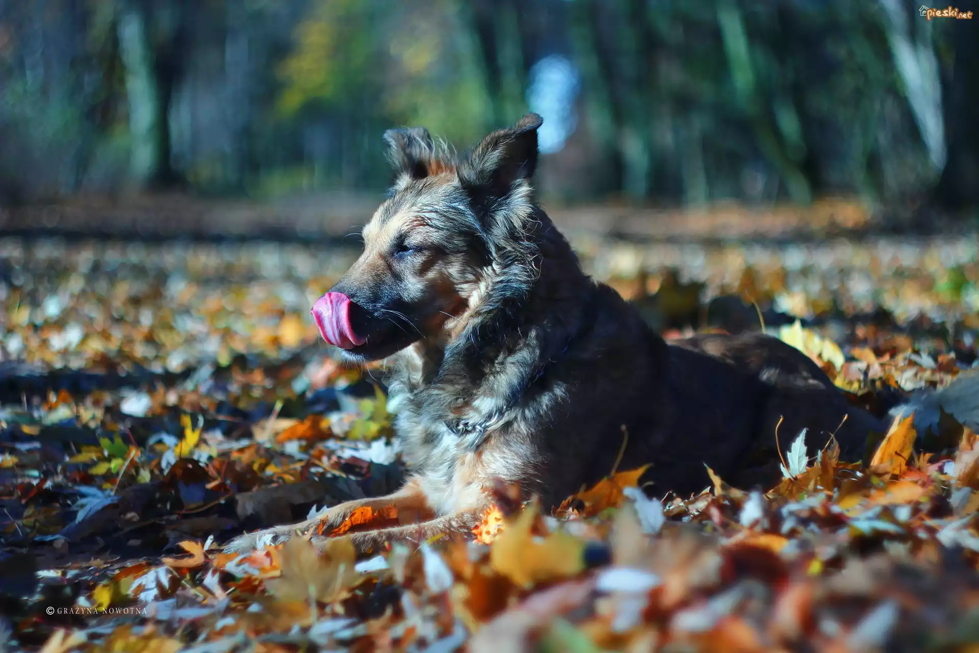 Pies, Suczka, Shila, Kundelek, Liście, Jesień