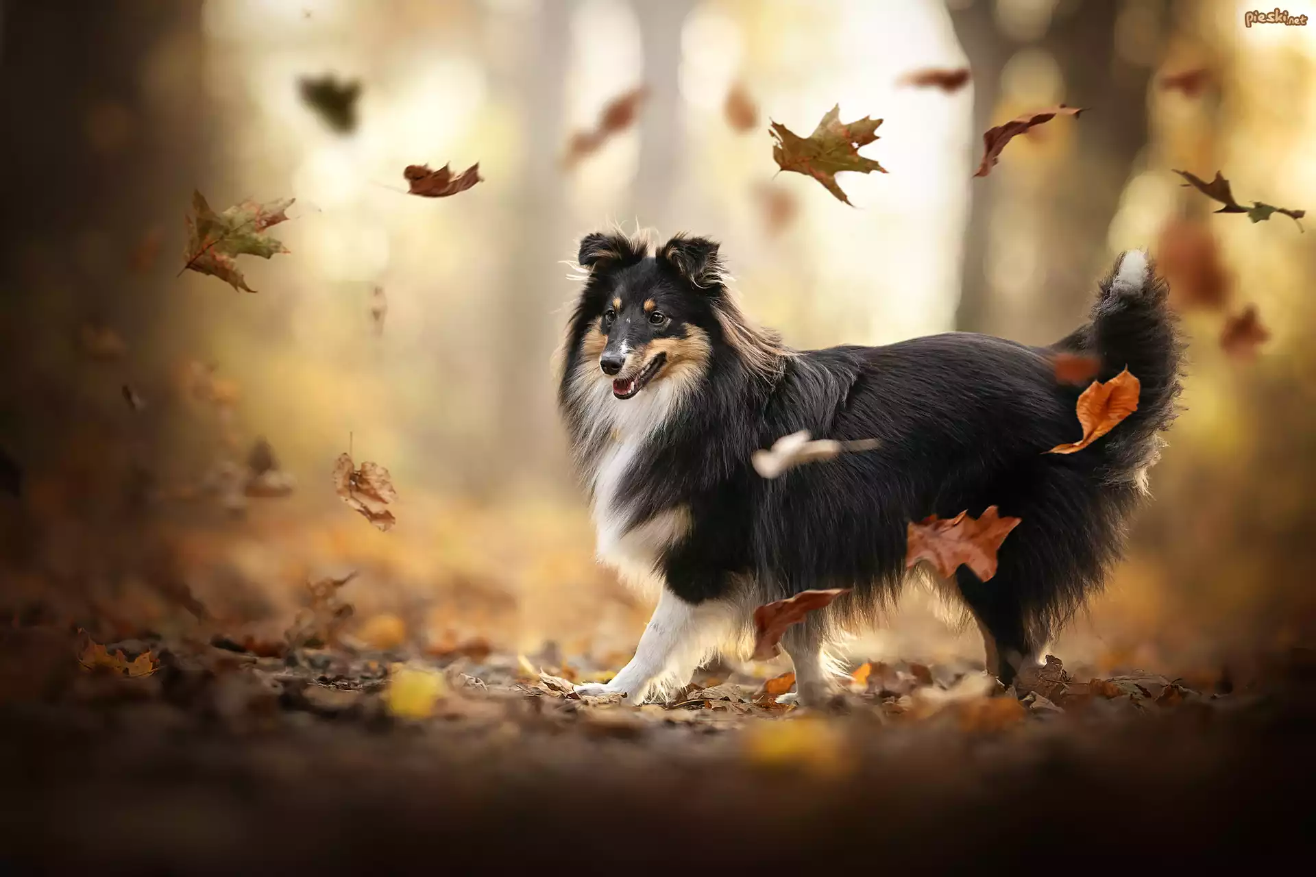 Pies Pies, Owczarek szetlandzki, Liście, Jesień