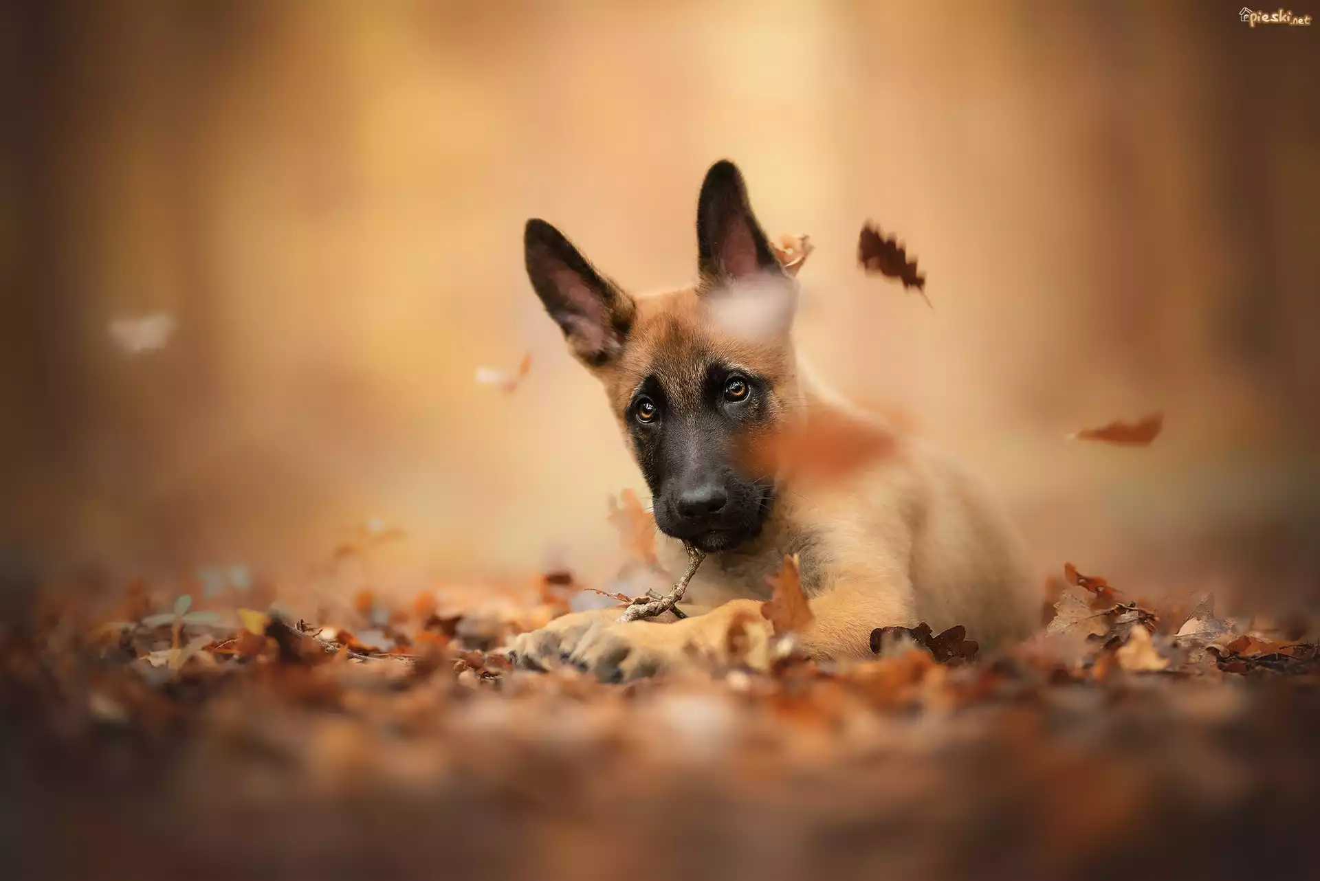 Pies, Szczeniak, Owczarek belgijski Malinois, Liście