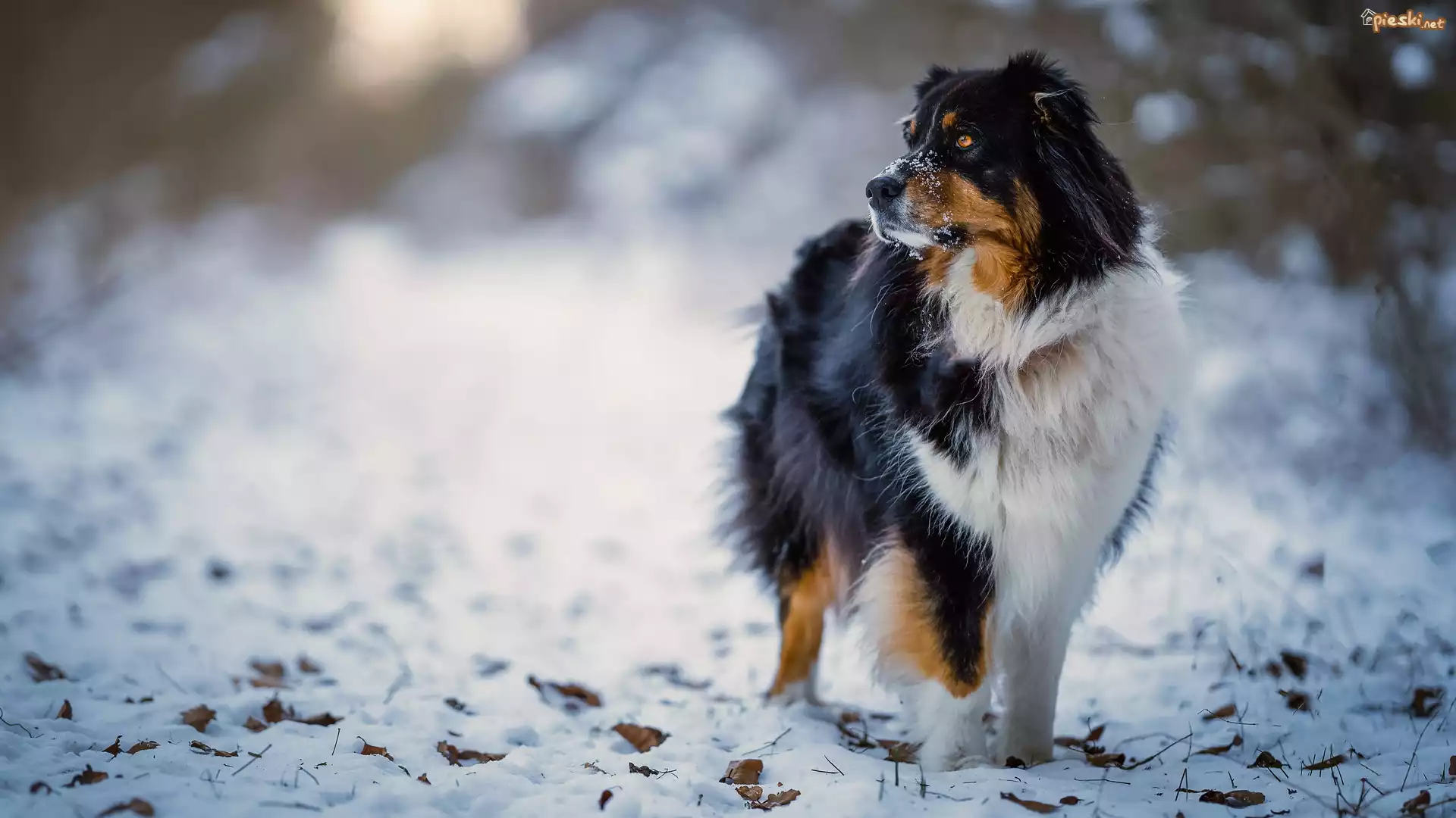 Pies Pies, Owczarek australijski, Ośnieżona, Mordka, Śnieg