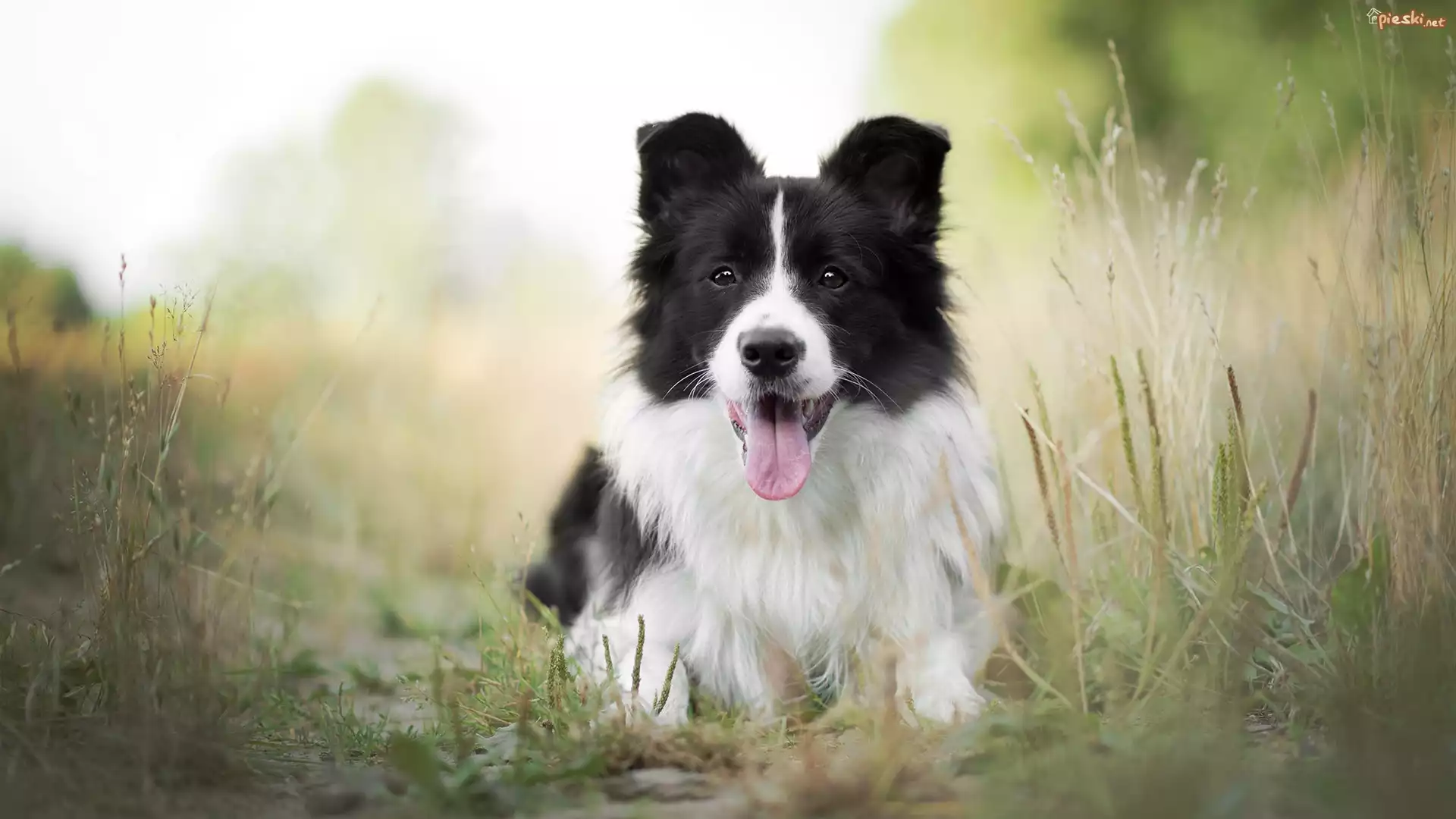 Pies Pies, Border collie, Mordka, Trawa