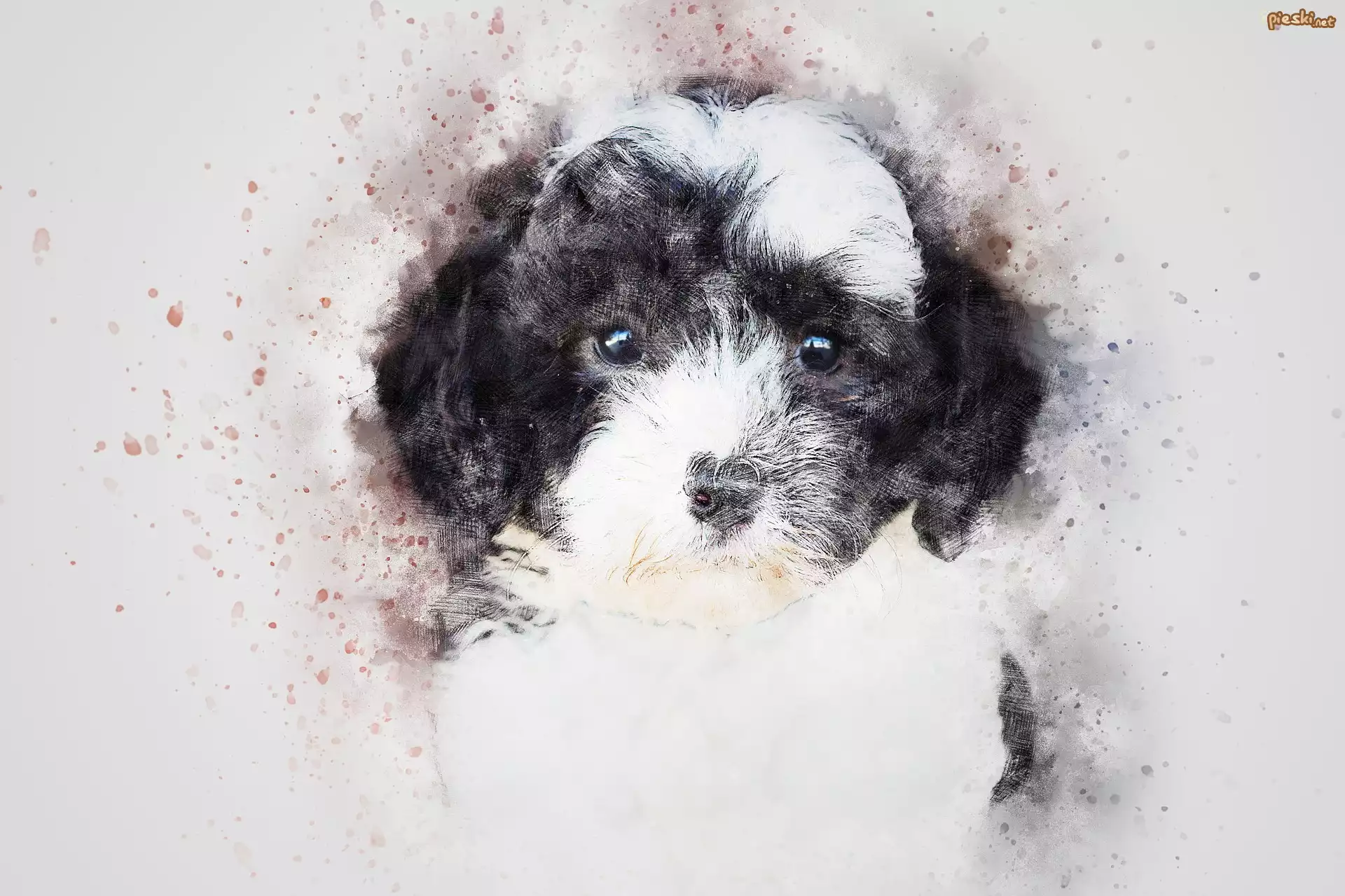 Pies Pies, Szczeniak, Czarno-biały, Mordka, Grafika