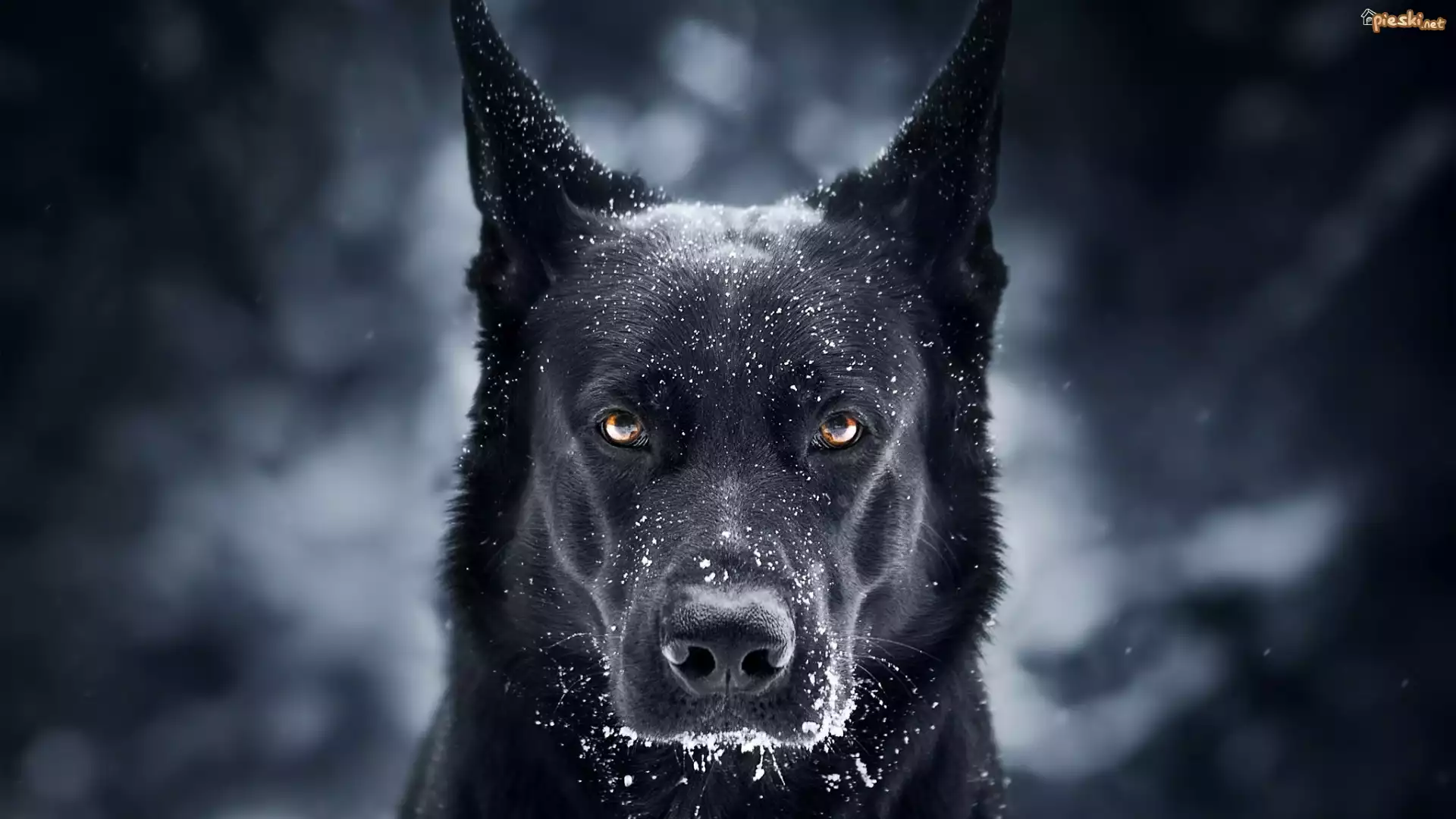 Pies Pies, Czarny owczarek niemiecki, Mordka, Śnieg