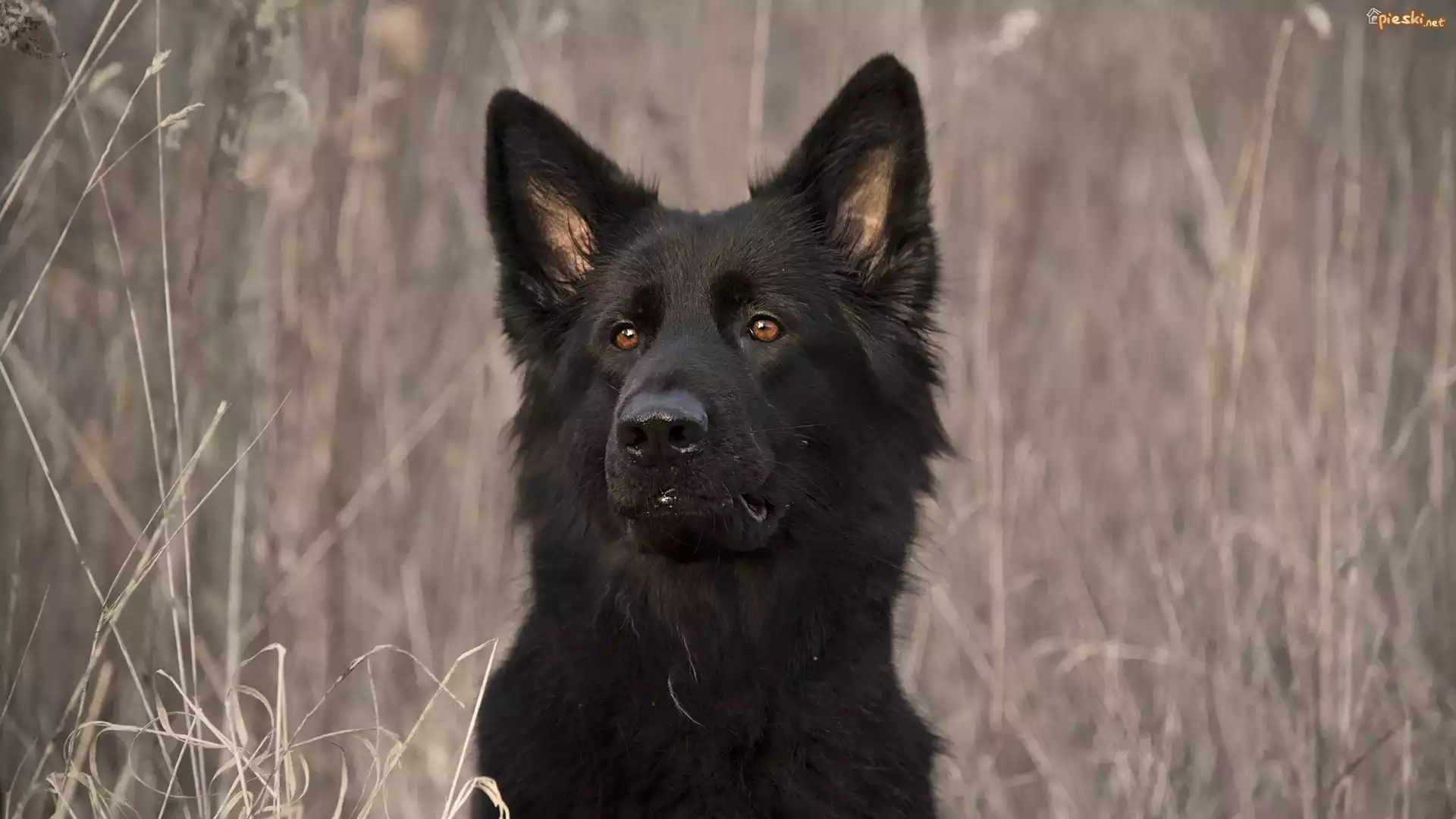 Pies Pies, Czarny owczarek niemiecki, Mordka, Trawa