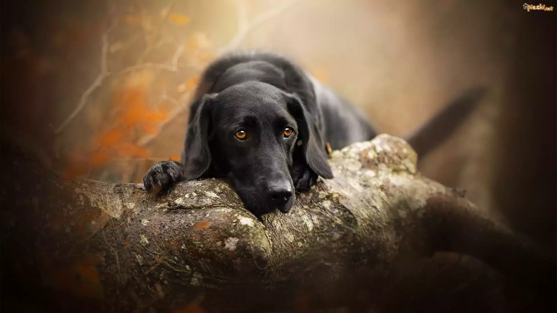 Pies Pies, Labrador retriever, Mordka, Drzewo