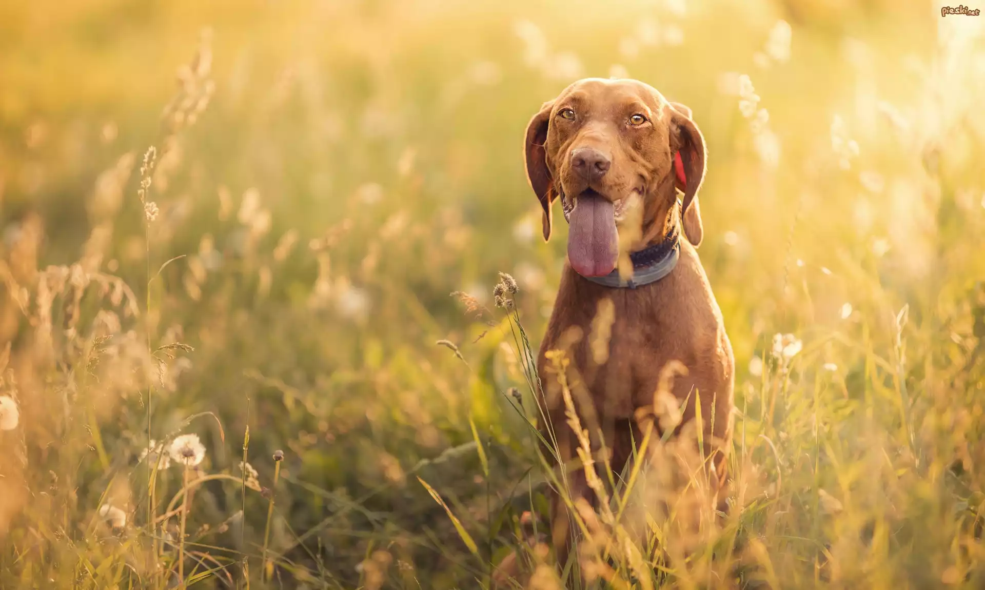 Pies, Wyżeł węgierski krótkowłosy, Mordka, Łąka