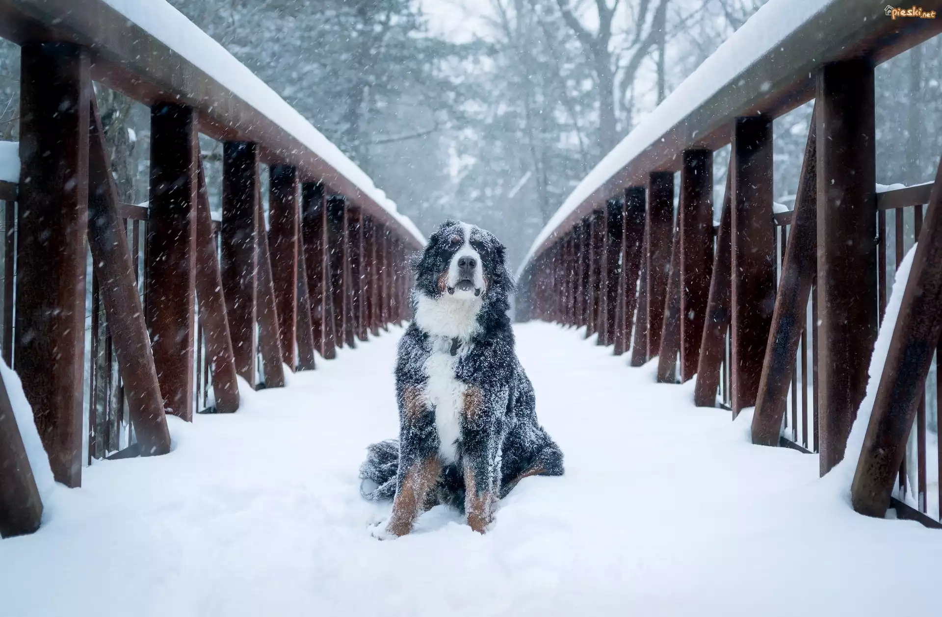 Pies Pies, Berneński pies pasterski, Most, Śnieg