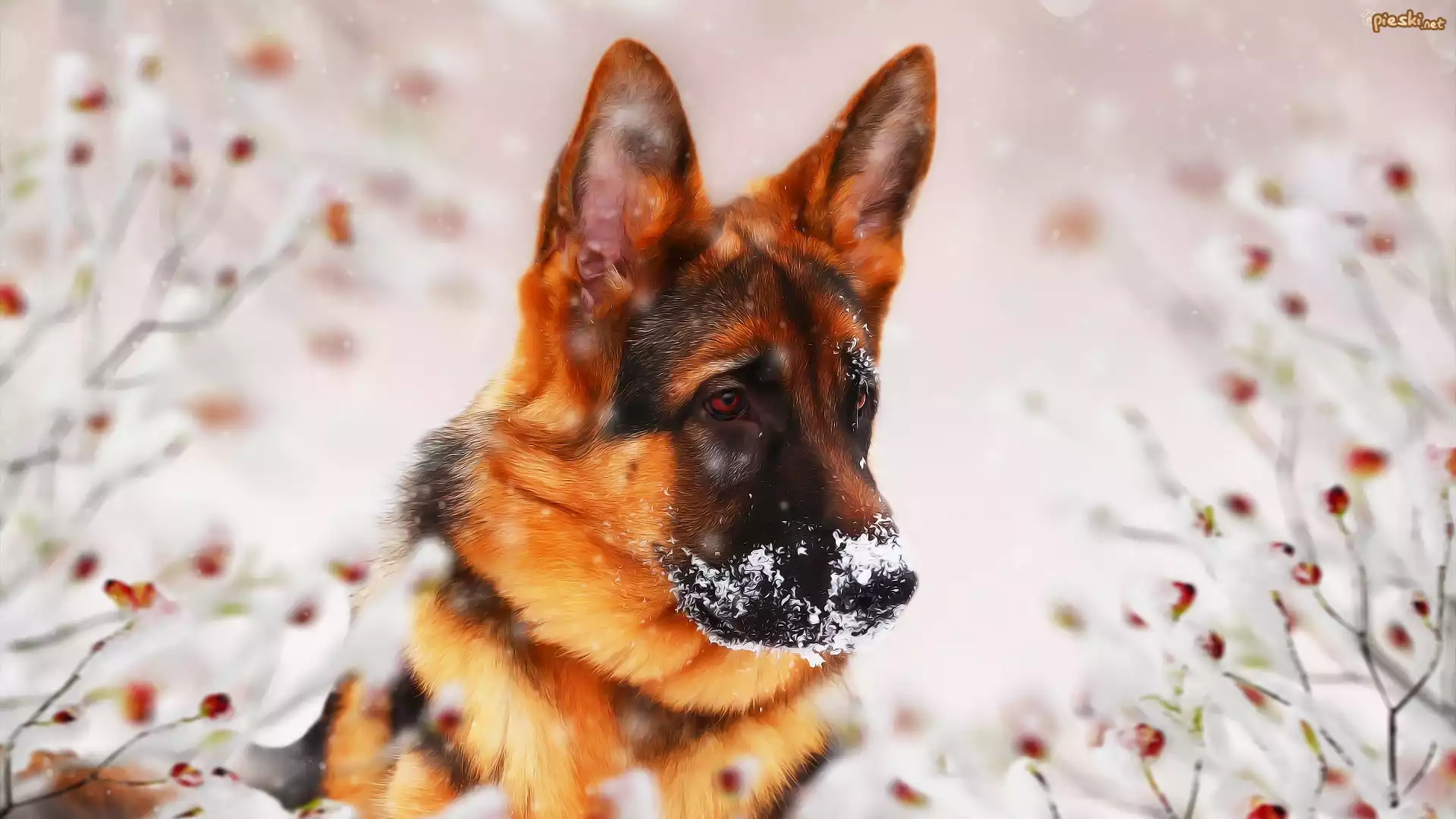 Pies Pies, Owczarek niemiecki, Śnieg, Grafika