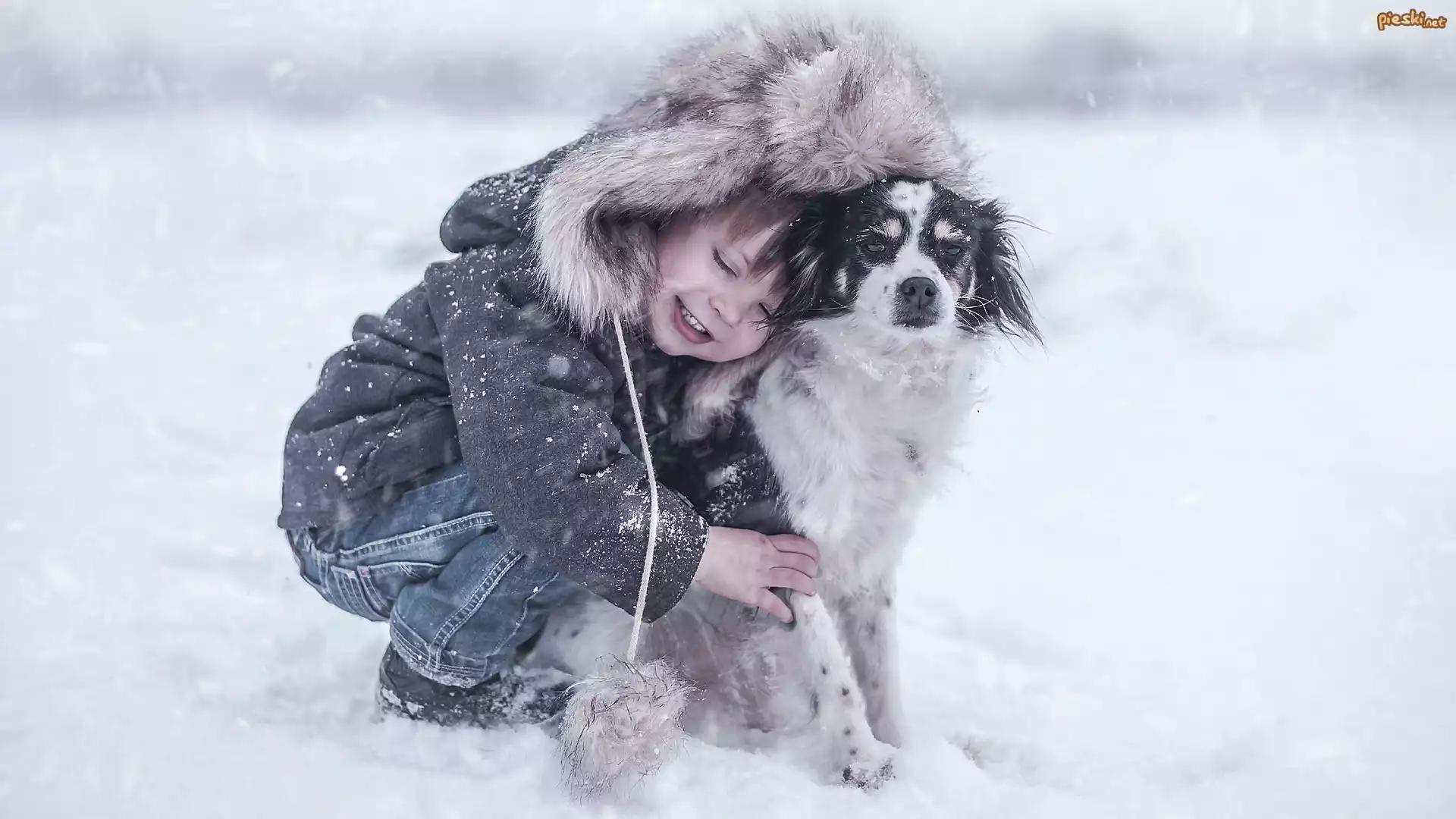 Pies Pies, Chłopczyk, Zima, Śnieg, Radość