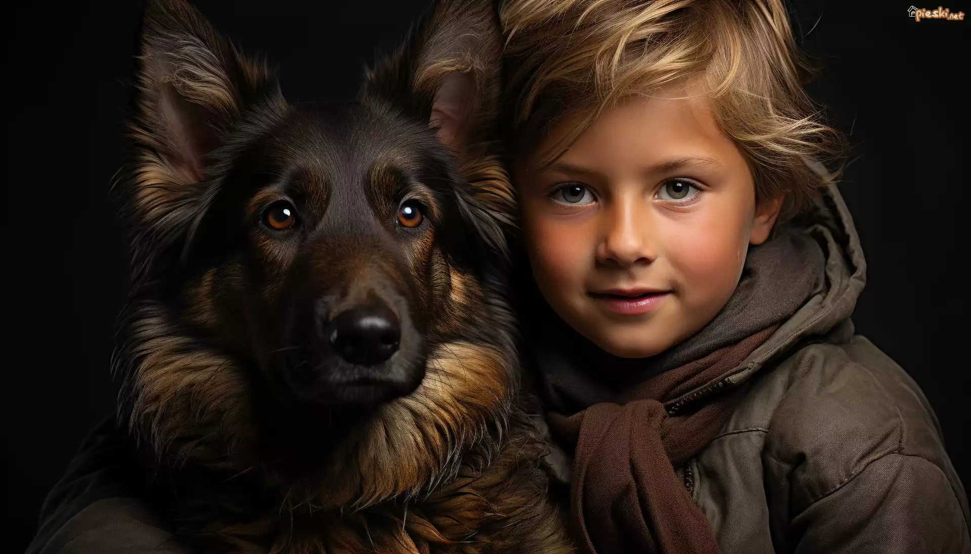 Chłopiec, Kurtka, Szalik, Pies, Owczarek niemiecki