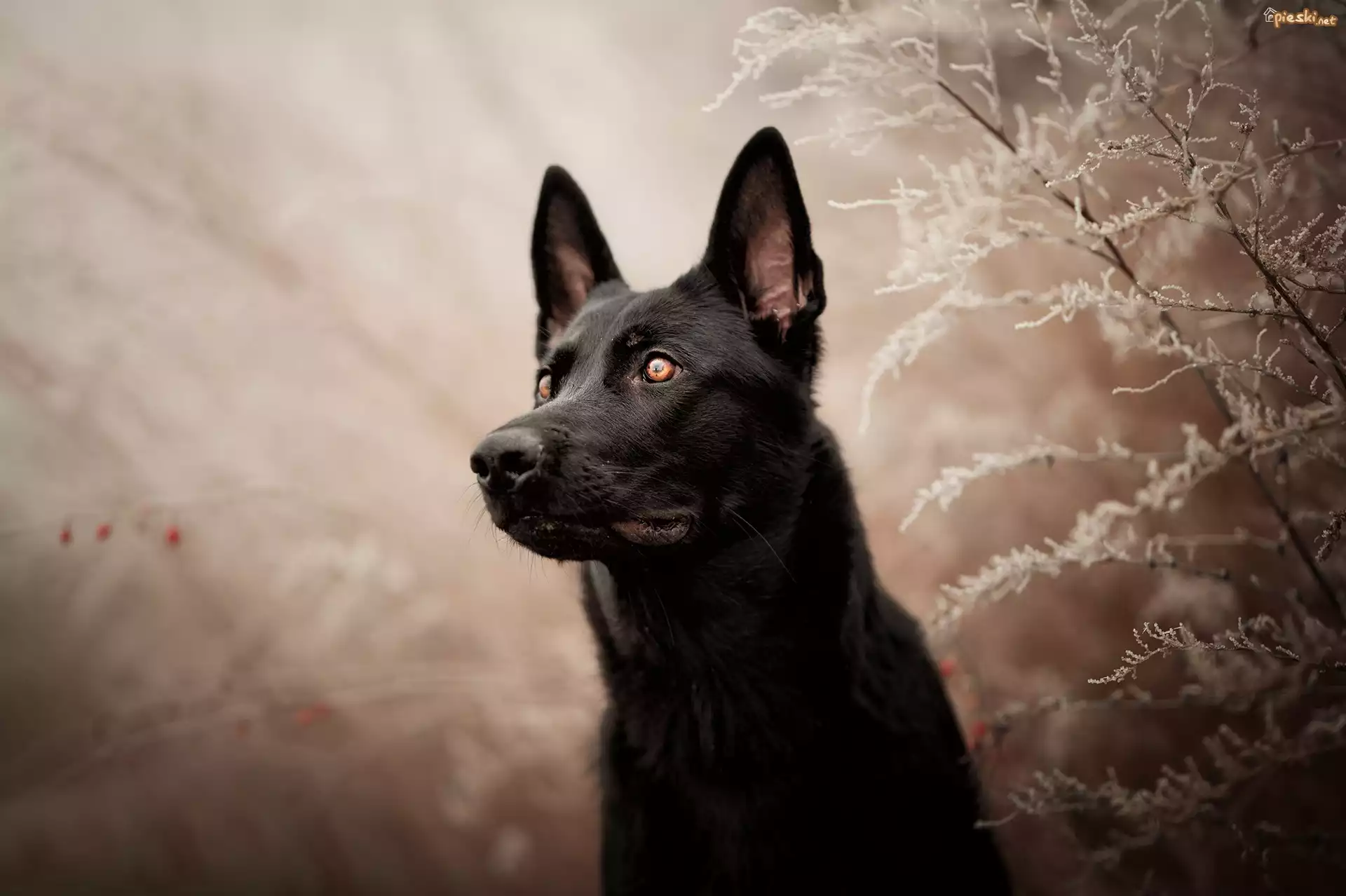 Pies Pies, Czarny owczarek niemiecki, Oszronione, Rośliny