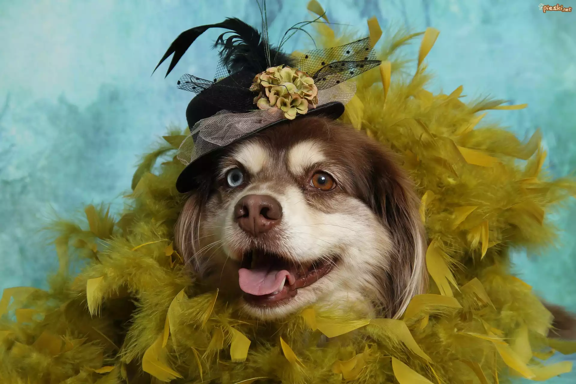 Pies, Szal boa, Piórka, Ozdobny, Kapelusz