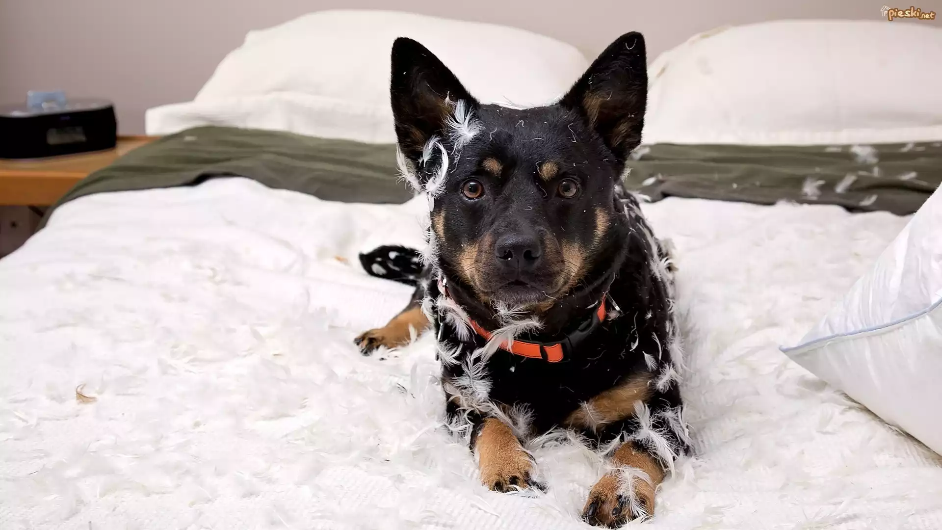Pies Pies, Pierze, Łóżko, Obroża