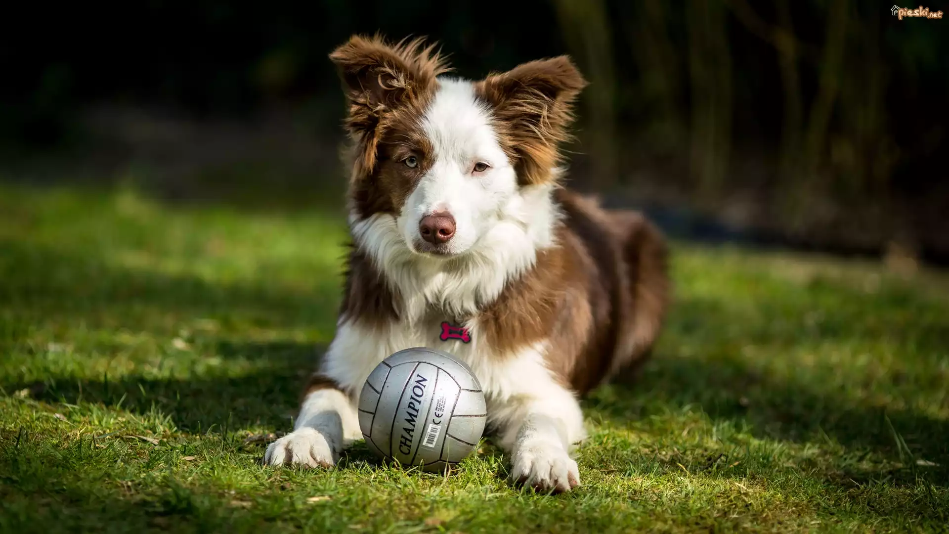 Pies Pies, Border collie, Piłka, Trawa